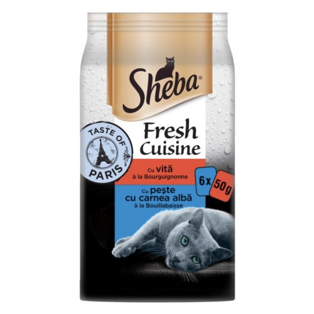 Set hrana umeda pentru pisici, Sheba Fresh Cuisine Paris, cu carne de vita si peste, 6 x 50g
