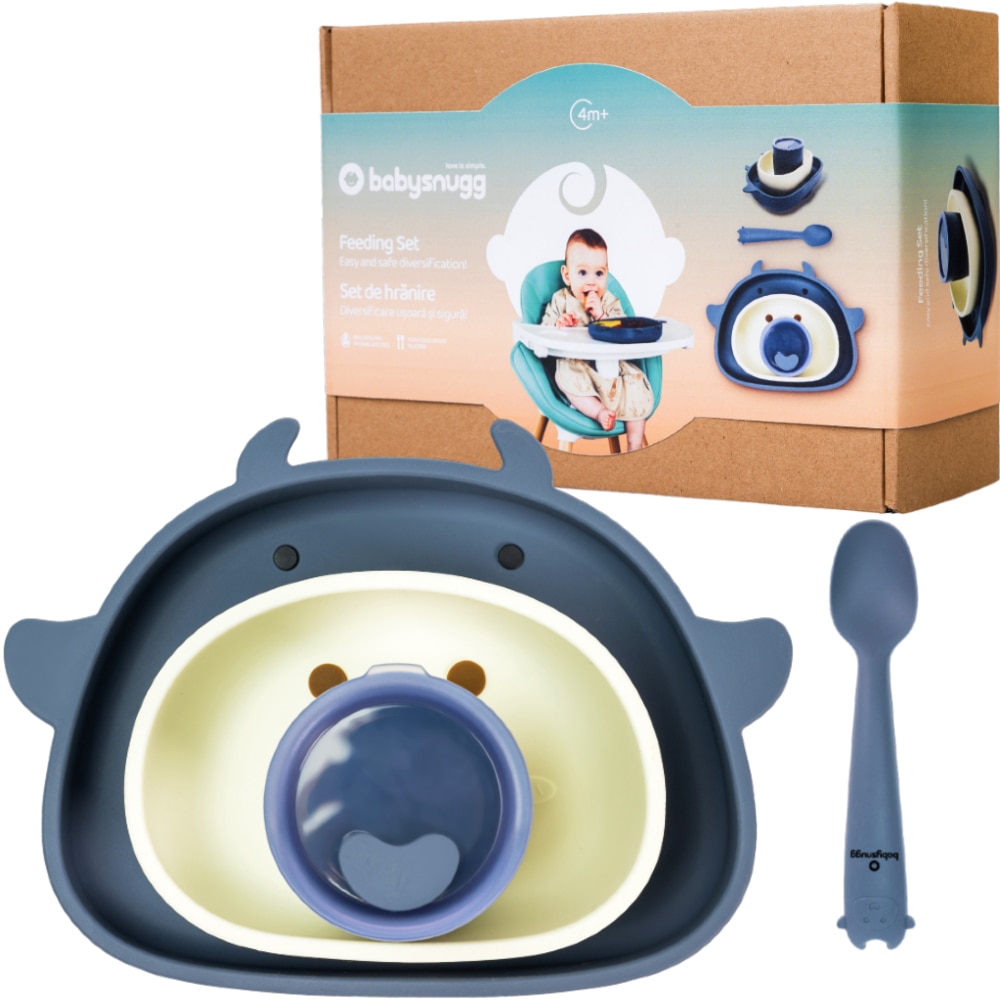 Set hranire bebelusi Babysnugg pentru diversificare din silicon BPA free, 6+ luni, Albastru