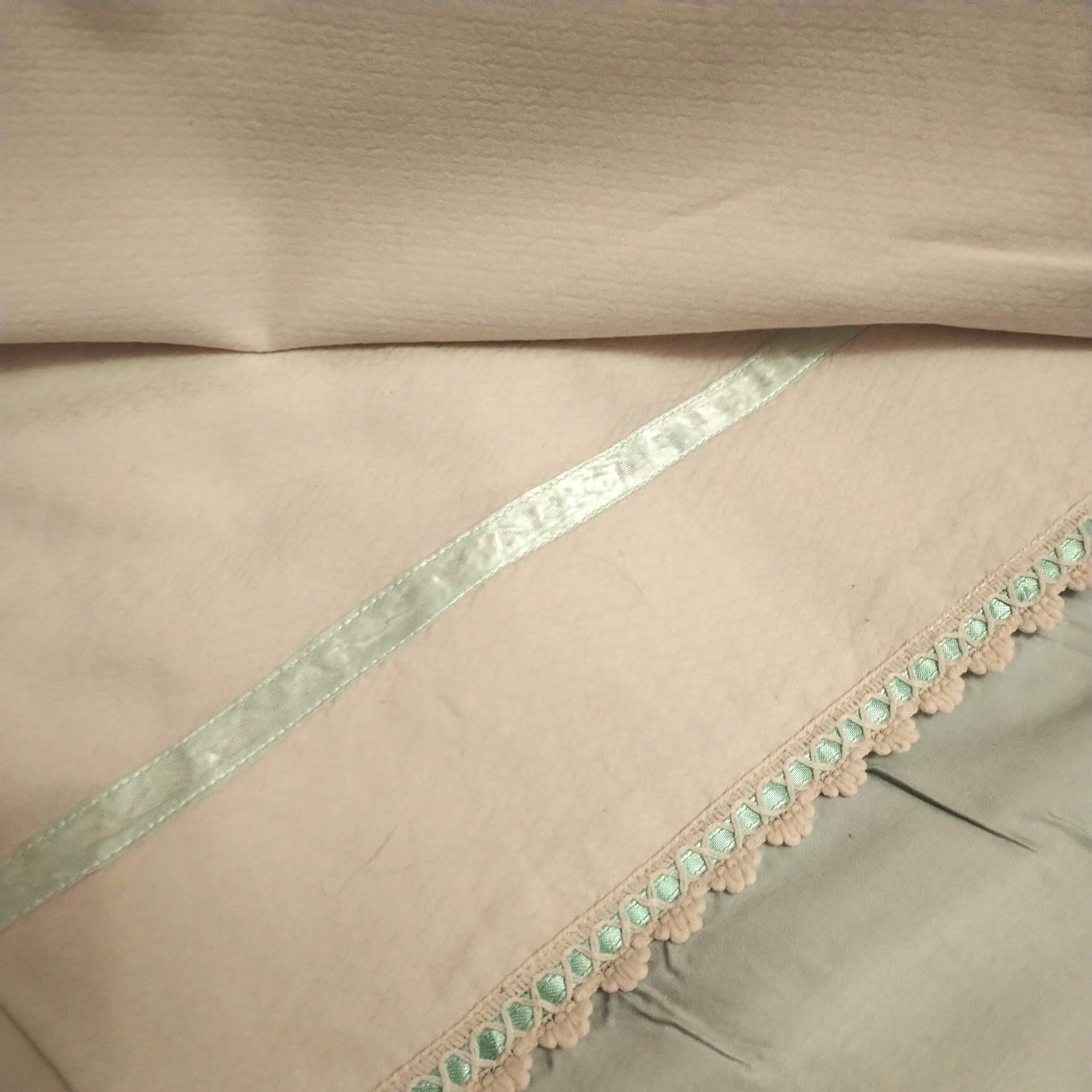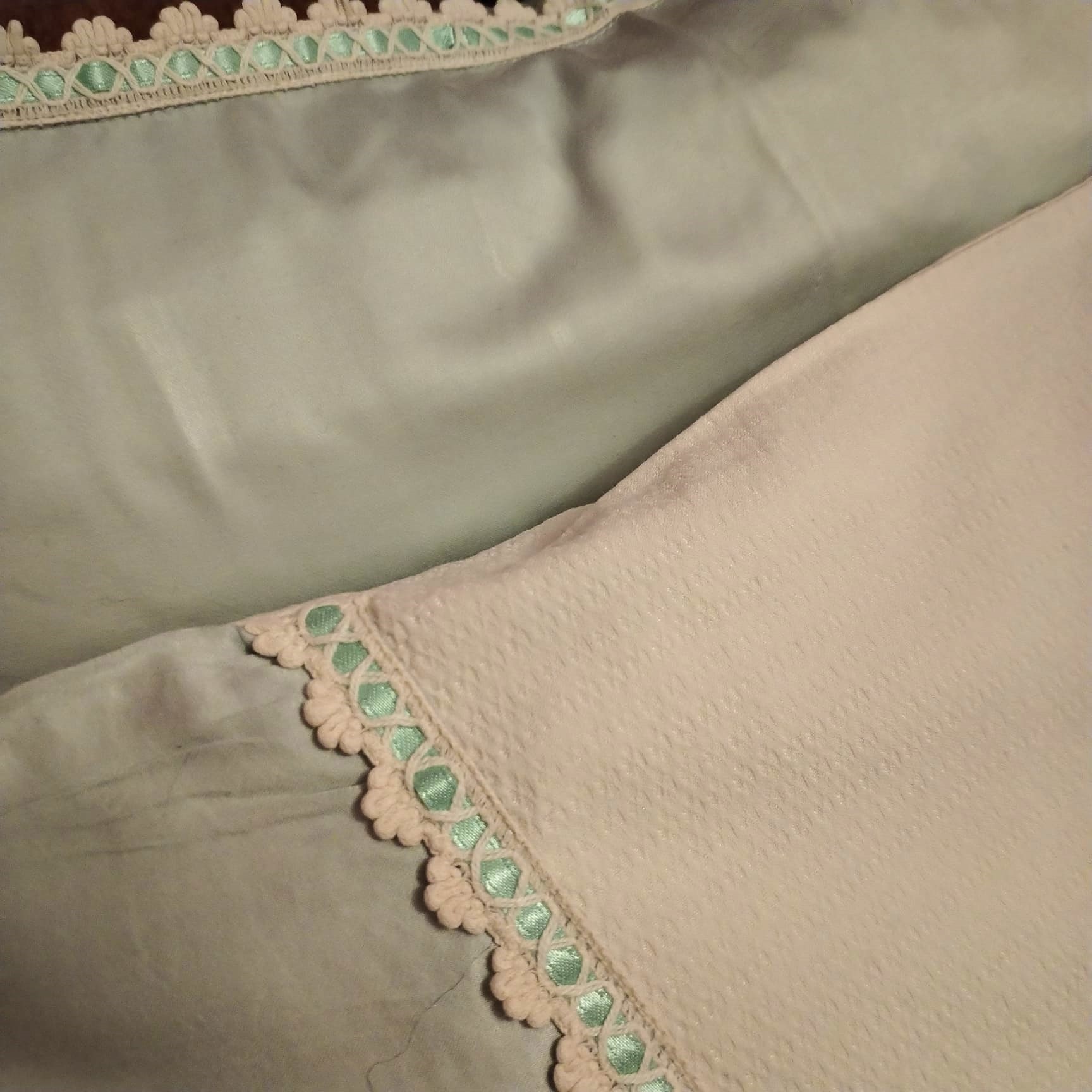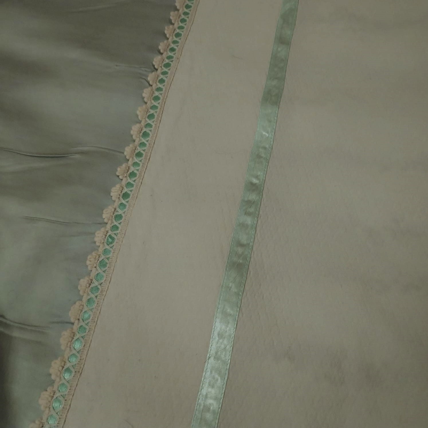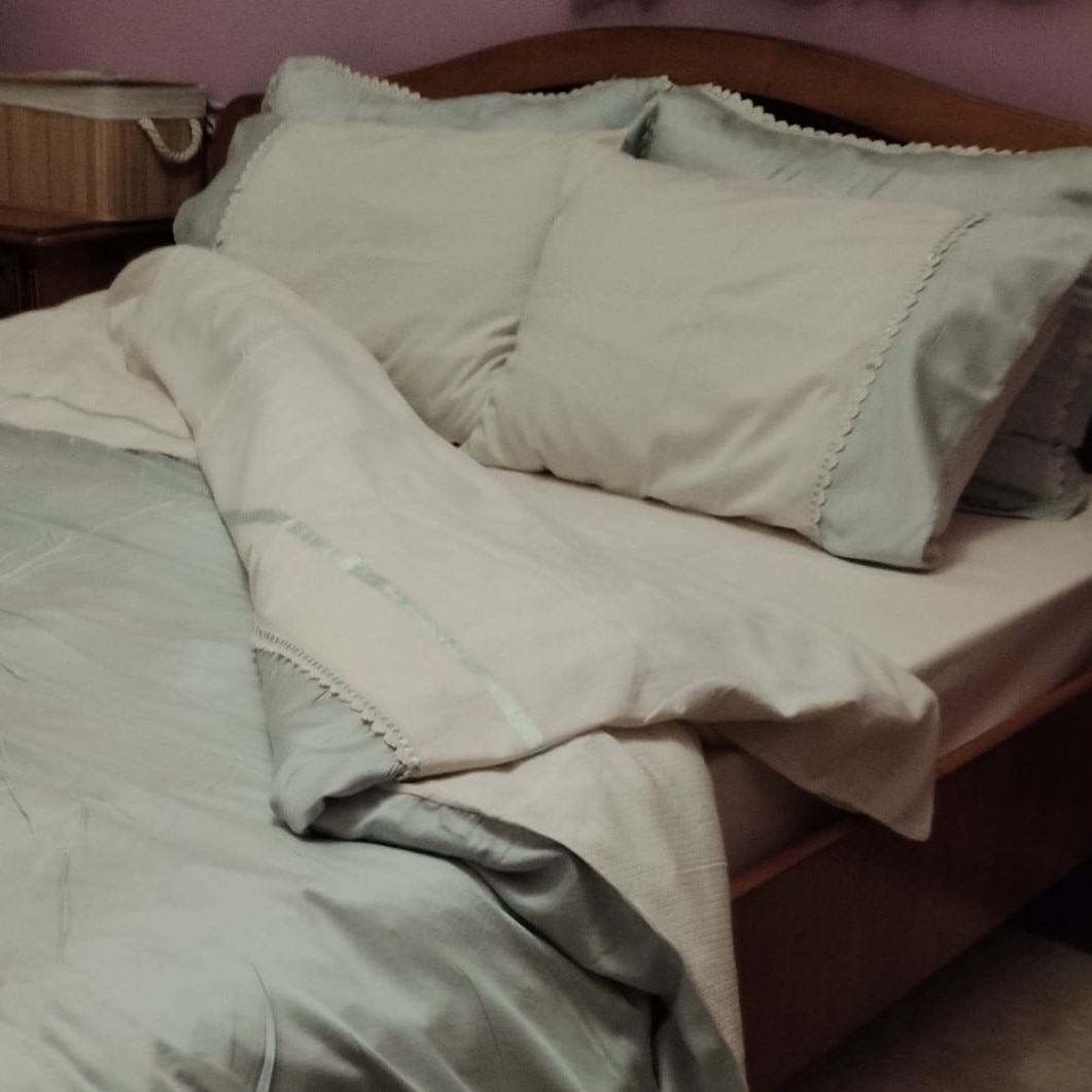 Set husa de pilota si 2 fete de perna, Casa Bucuriei, Model Imperial, 3 piese, crem deschis/vernil, bumbac 100%, 140/220 cm