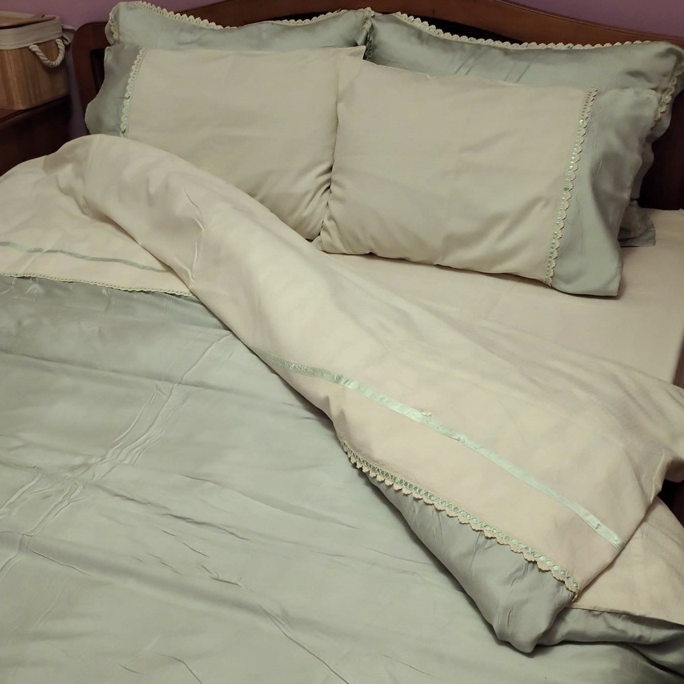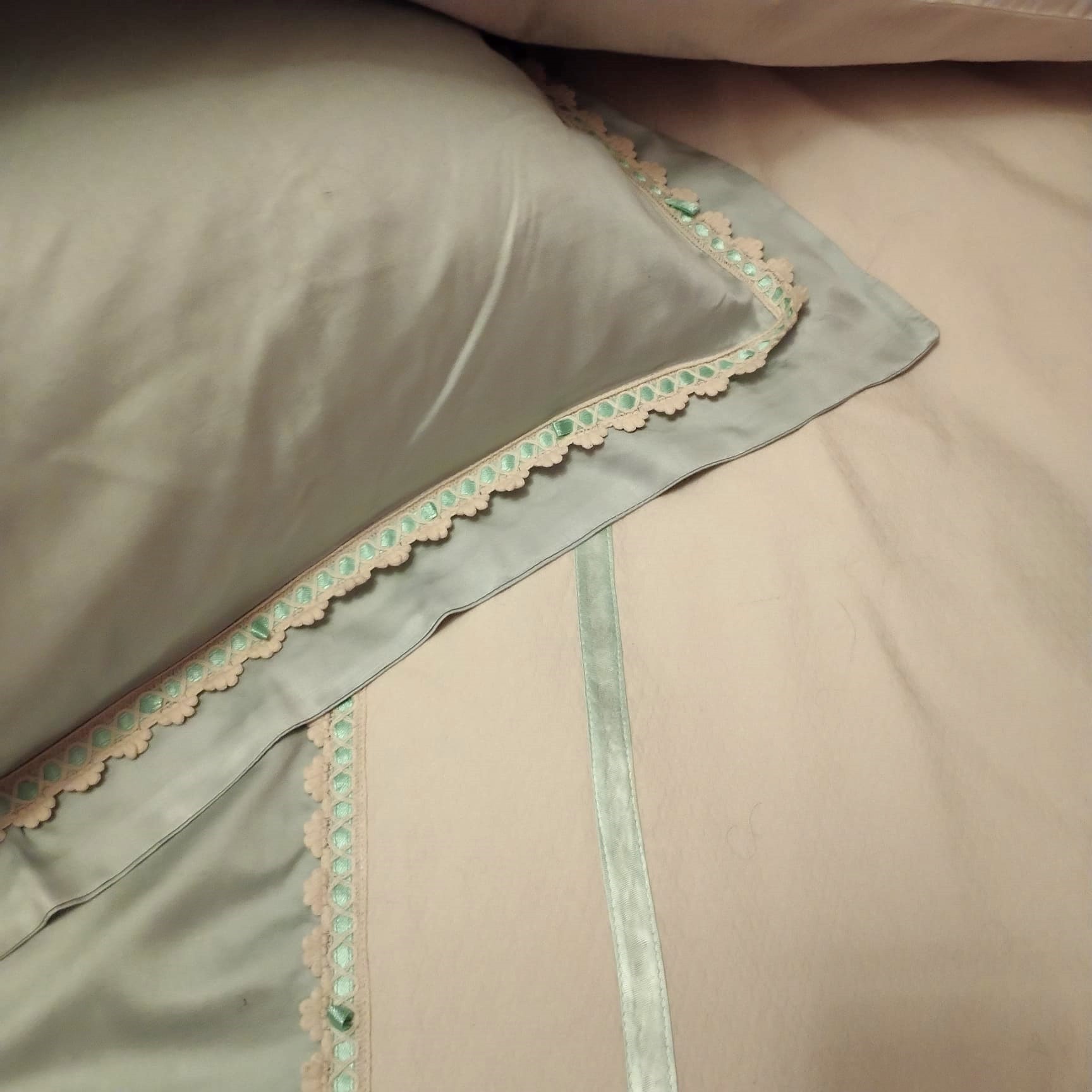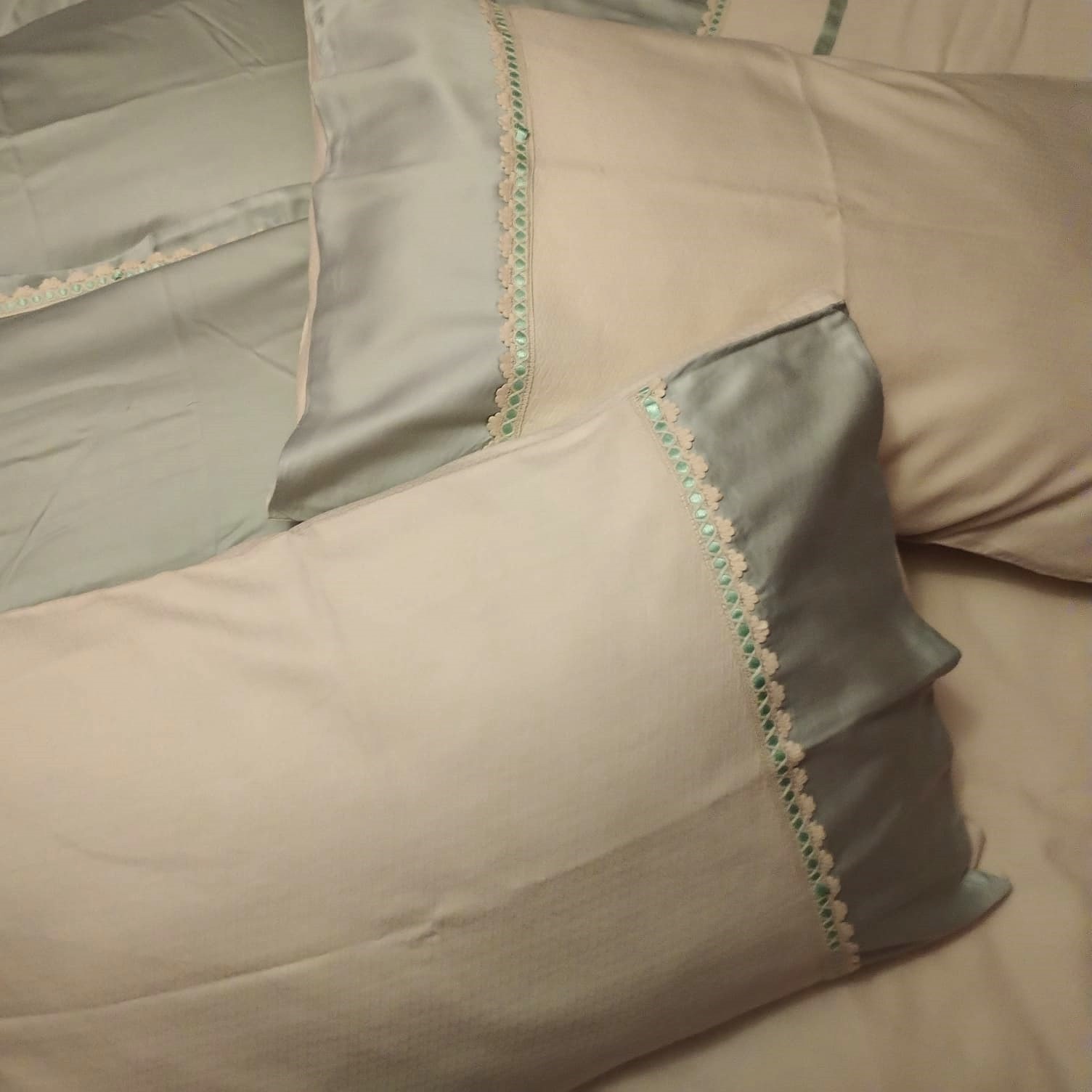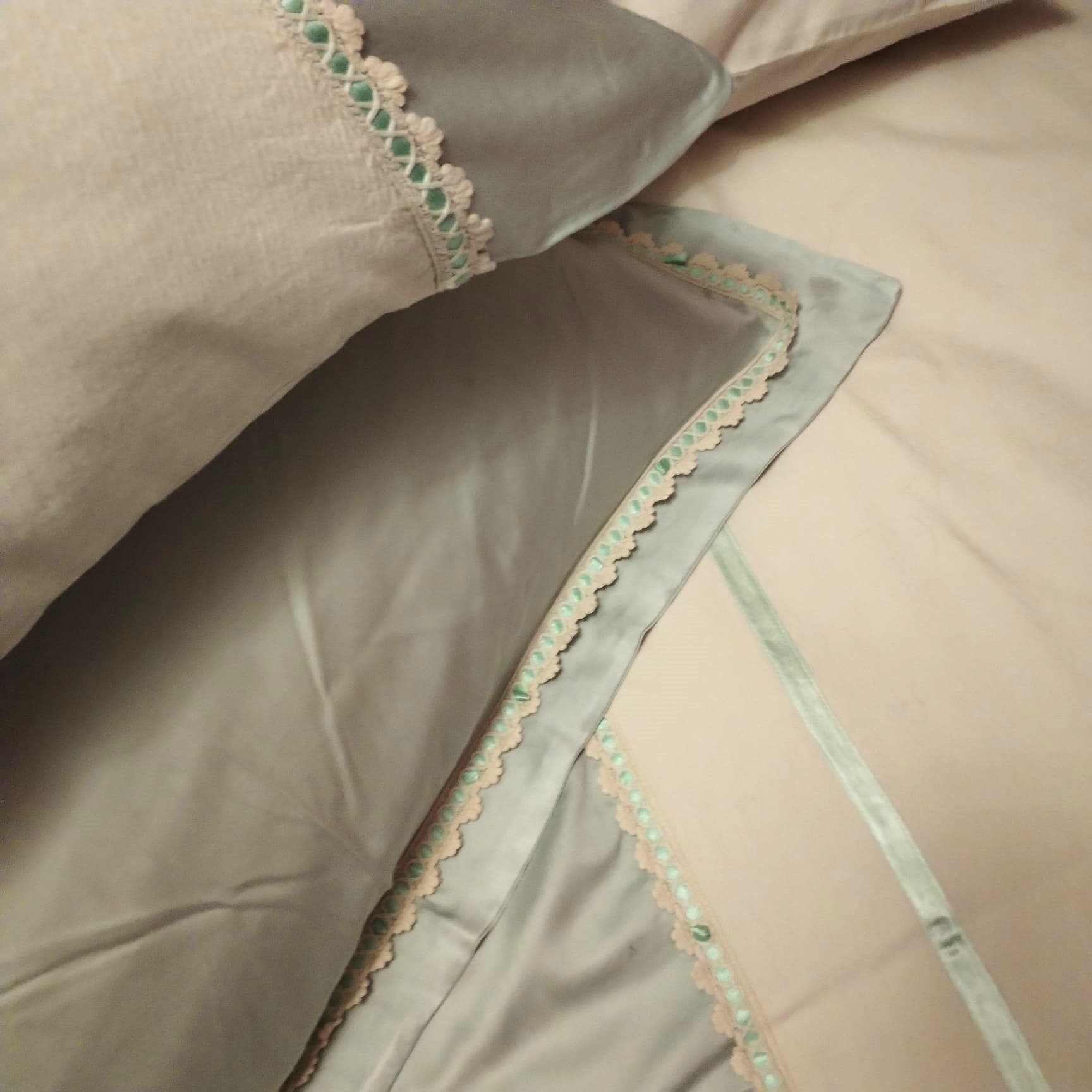 Set husa de pilota si 2 fete de perna, Casa Bucuriei, Model Imperial, 3 piese, crem deschis/vernil, bumbac 100%, 140/220 cm
