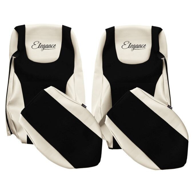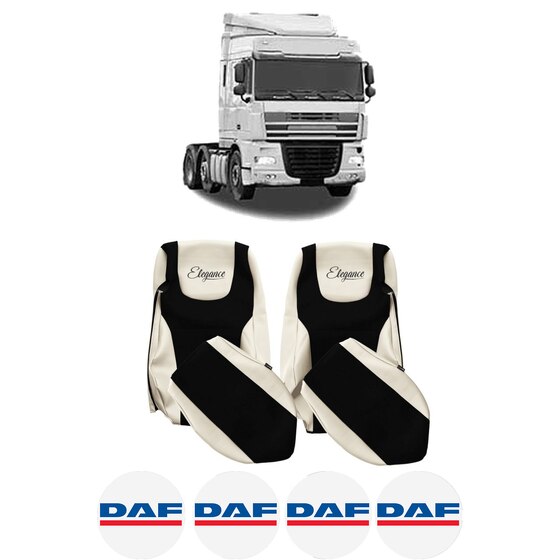 Set Huse Scaune Camion Tir DAF XF 105 din 2005-2013, Auto, Model ELEGANCE S, Culoare Sampanie, 4x Stickere auto cu DAF