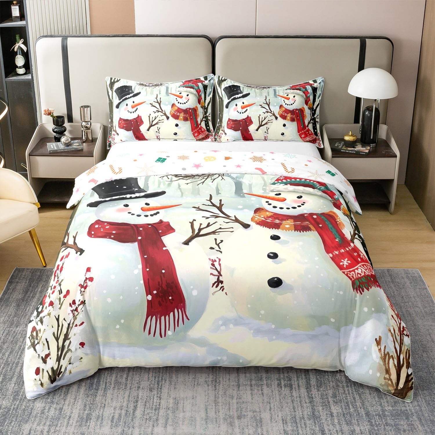 Set lenjerie de pat copii, Homewish, Crăciun, om de zăpadă, 135x200cm, 100% bumbac