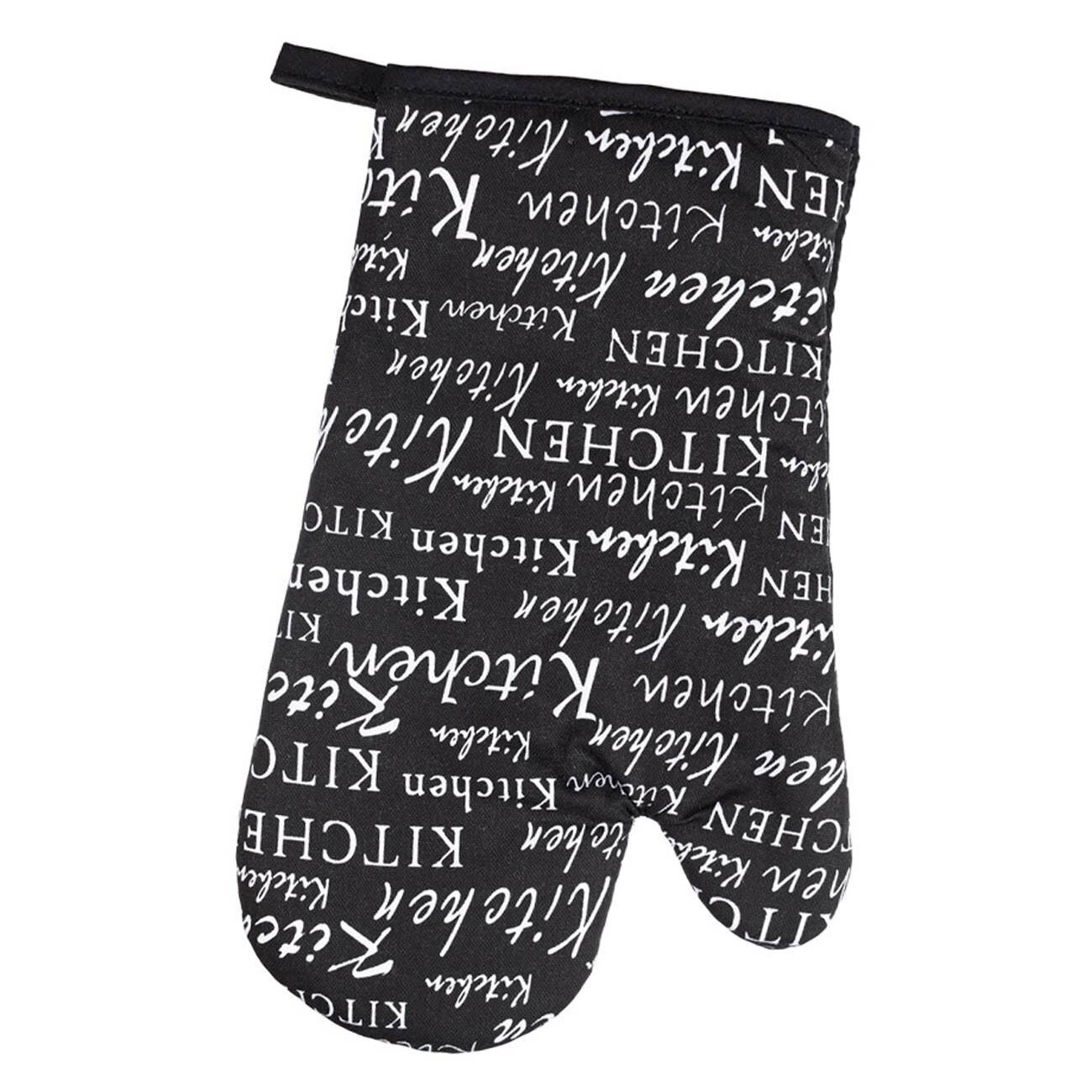 Set mănușă și șervețel termic, negru cu litere albe, 17x27cm și 17.5x17.5cm