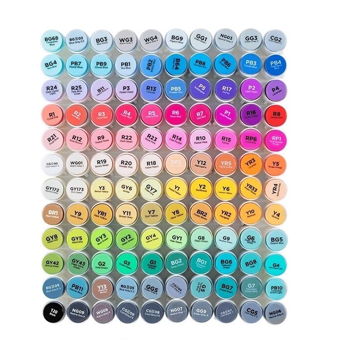 Set markere colorate, 120 culori vibrante, varfuri duble, cu blender incolor, cutie de transport