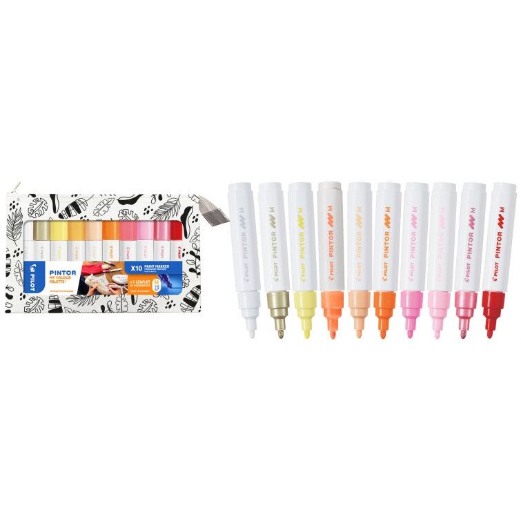 Set Markere Pilot Pintor, 10 culori, vopsea pe bază de apă, ideal pentru ceramică și textile