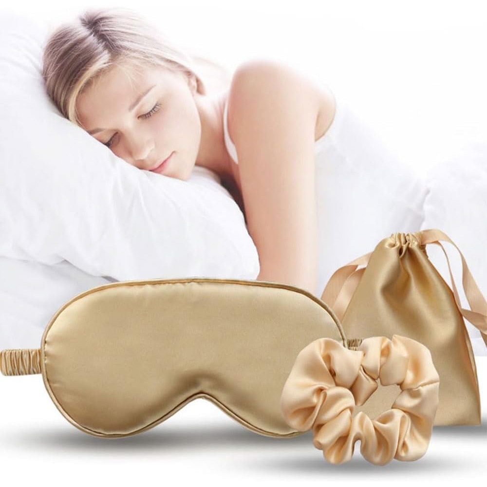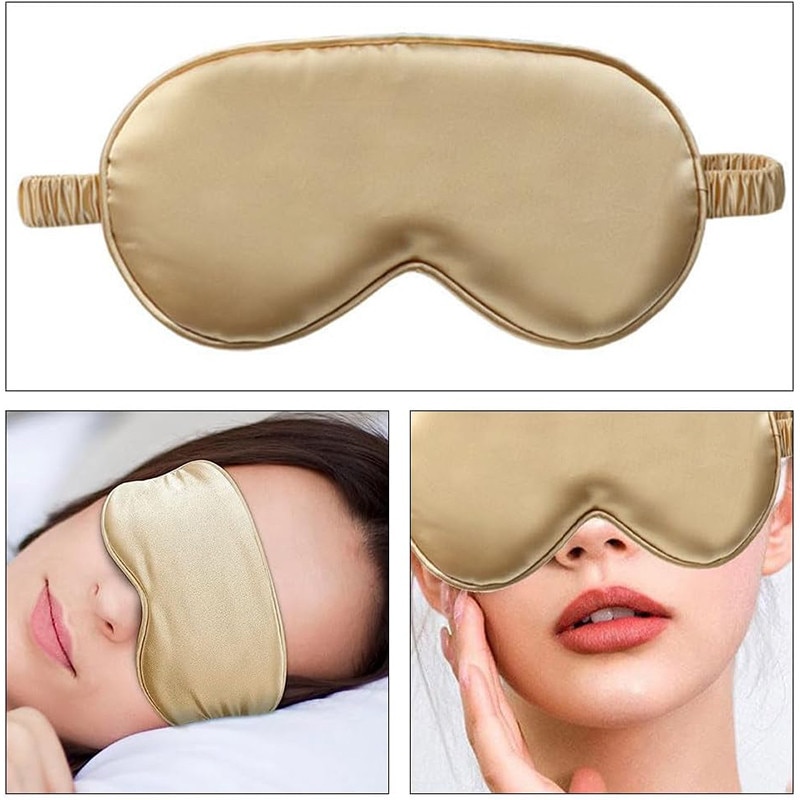 Set Masca de dormit pentru voiaj, BOMSTOM, ajustabila, 100% Lumina Blocata, Hipoalergenica, Respirabila, Auriu