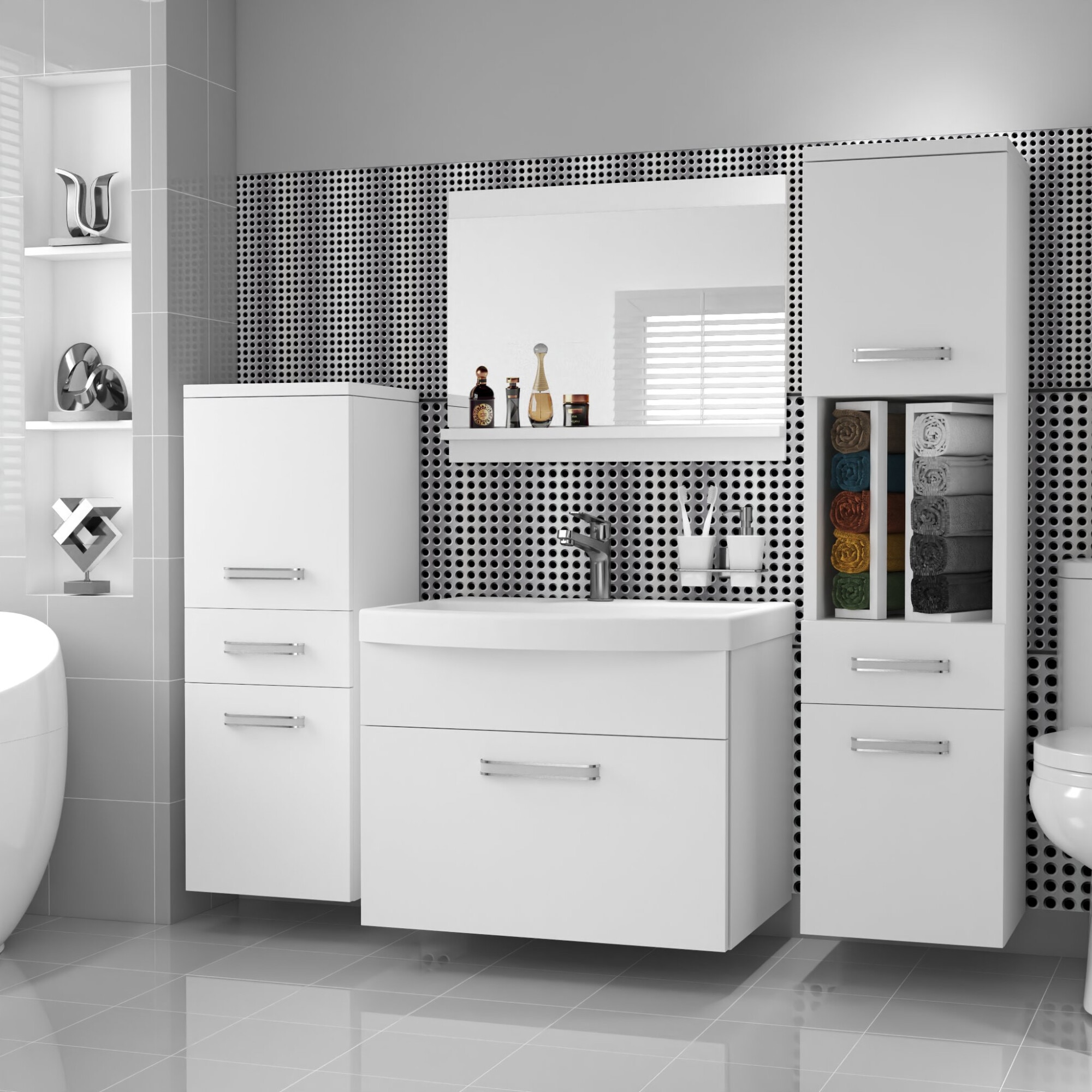 Set mobilier baie Belini cu oglinda, alb, 5 usi, 120x38.7x113.5cm