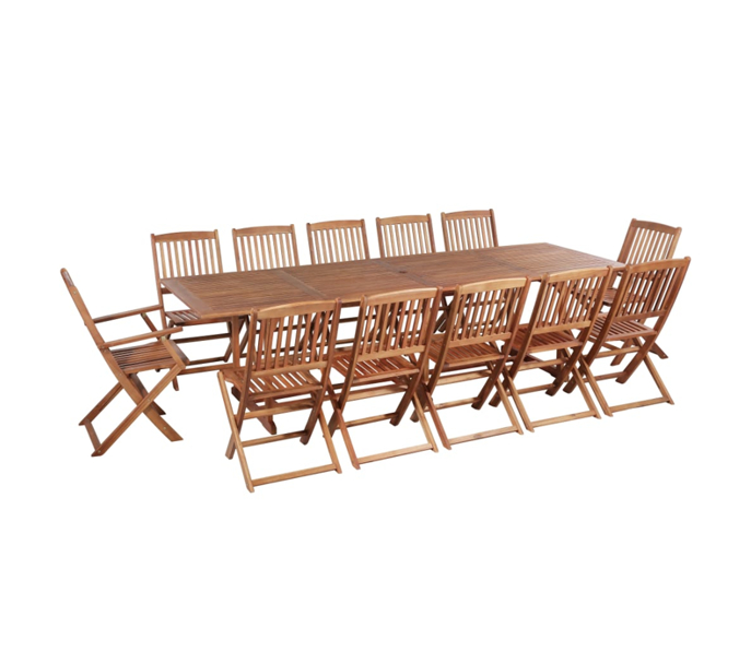 Set mobilier de exterior, cu masa si 12 scaune, vidaXL, Lemn masiv de acacia, Maro, 200 x 90 x 74.5 cm