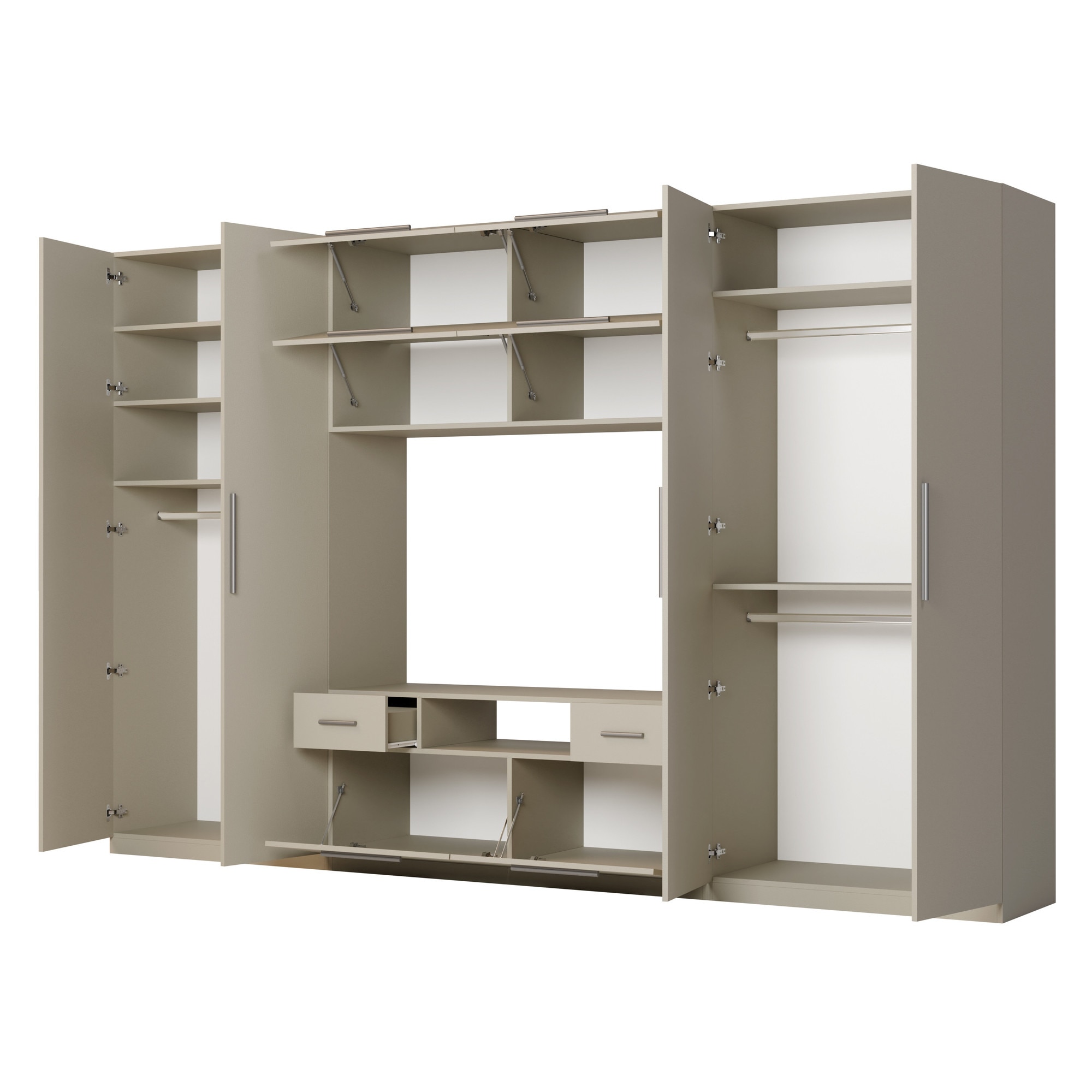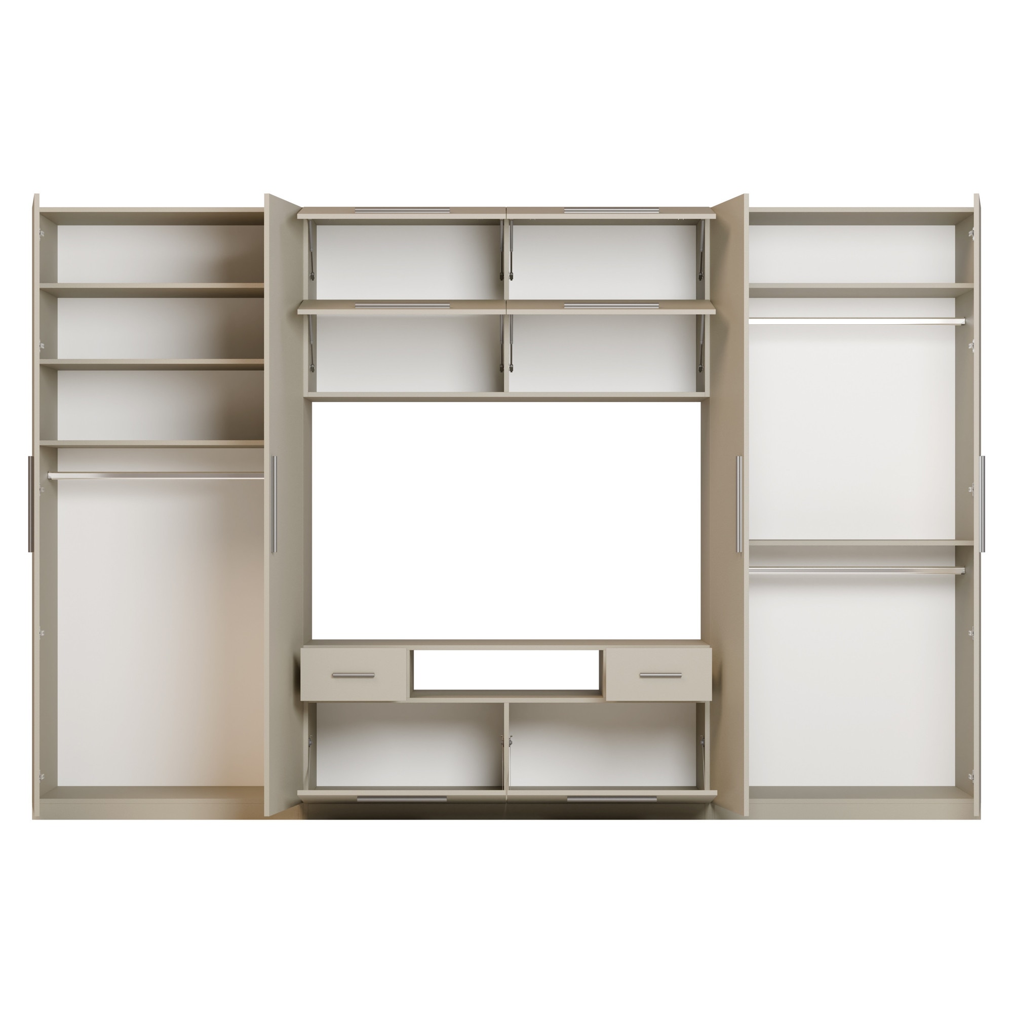 Set Mobilier pentru living, Meblast, Scandi, 350 cm x 227 cm x 53 cm, PAL 18 mm, HDF de 3 mm, PVC 0.8 mm, Bej casmir