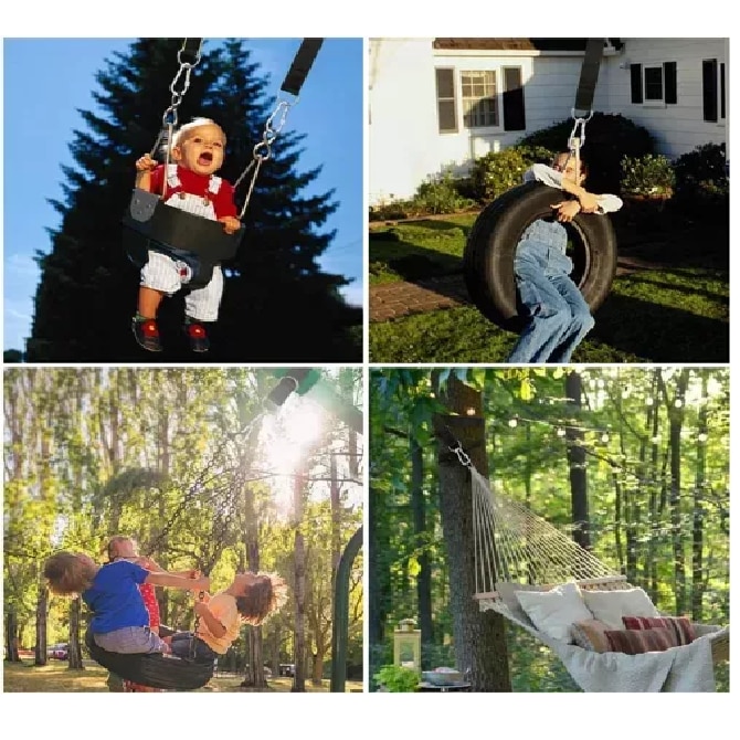 Set montare hamace si leagane, eBA®, lungimea liniilor 152 cm, greutate maxima suportata 150 kg, din metal si poliester, negru