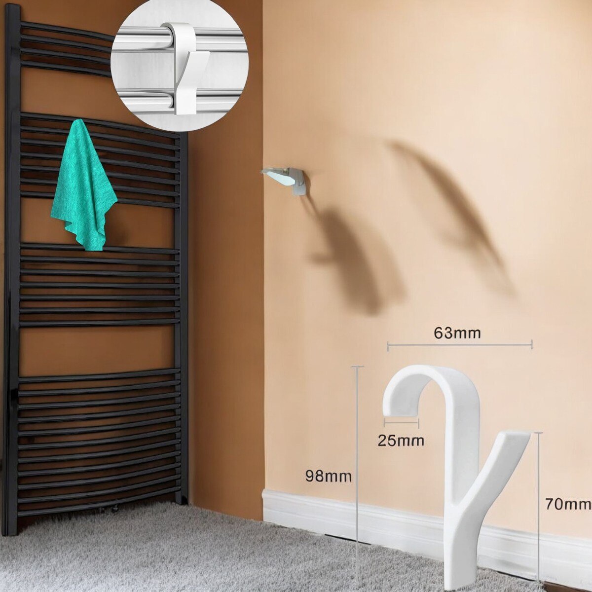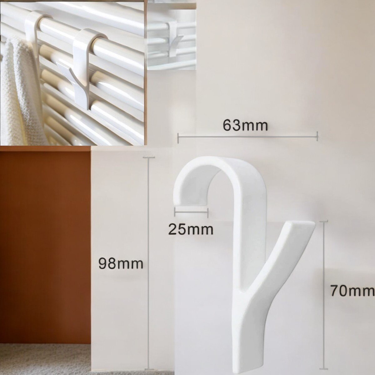 Set organizator baie cu 5 bucati suporti albi, pentru calorifer, cabina dus, haine, dressing