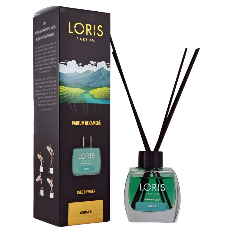 Set parfum odorizat de camera cu betisoare parfumate, miros placut persistent, LORIS PARFUM, esenta GERGER, 120 ml, cu gentuta cosmetice parfumuri