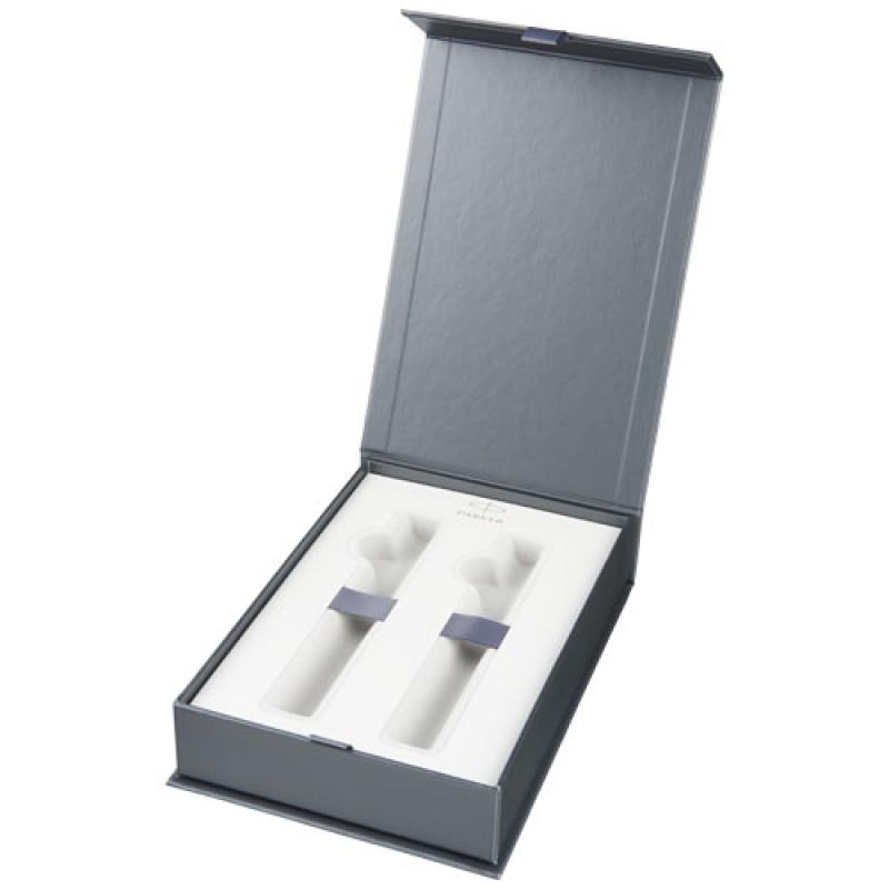 Set Parker Stilou Pix Jotter Royal Blue CT gravat, in cutie duo, cu etui Leather Black, rezerva mina pix Quink Flow Blue, convertor functional, calimara cerneala si punga