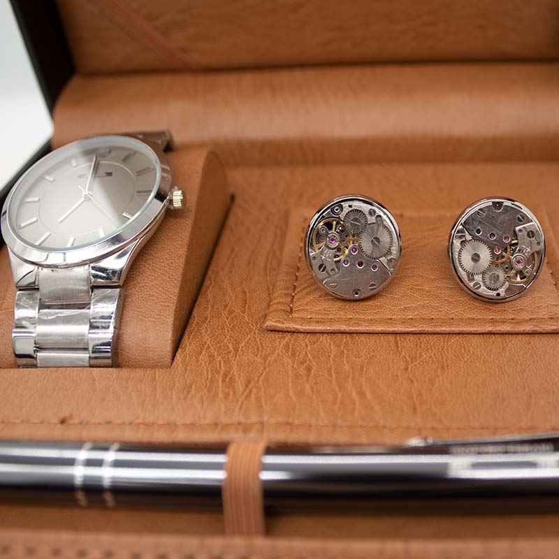 | Continut pachet | Butoni Cutie eleganta cu ceas Pix metalic |