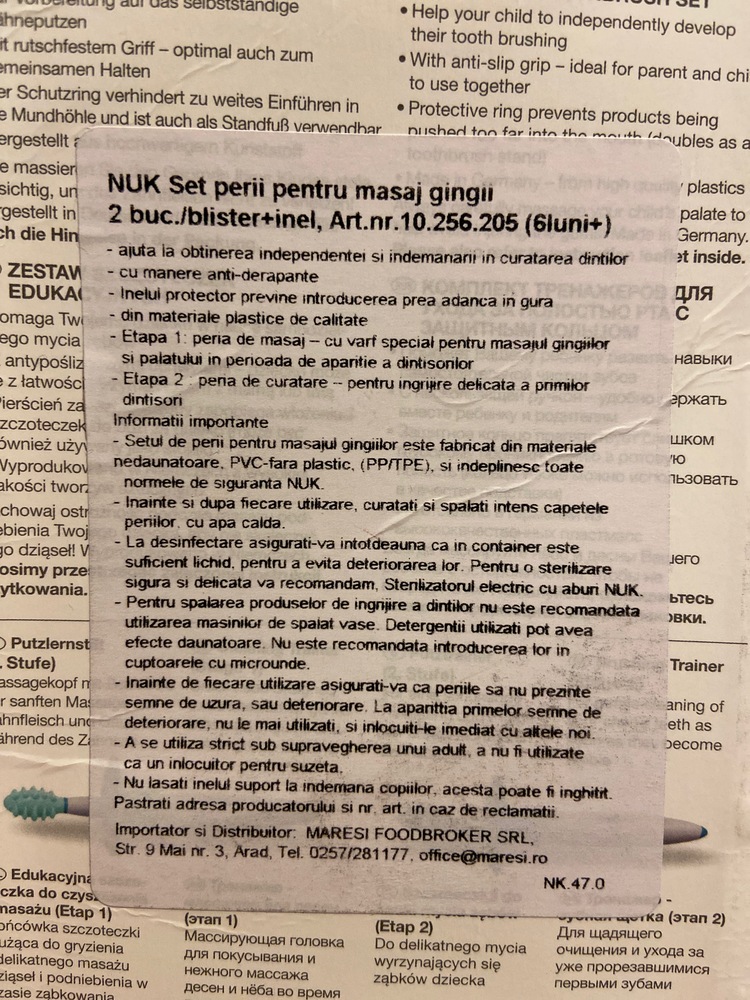 Periuța e foarte tare, copilul a luat-o la ronțăit ca sa aline durerea dar s-a rupt imediat in partea din spate