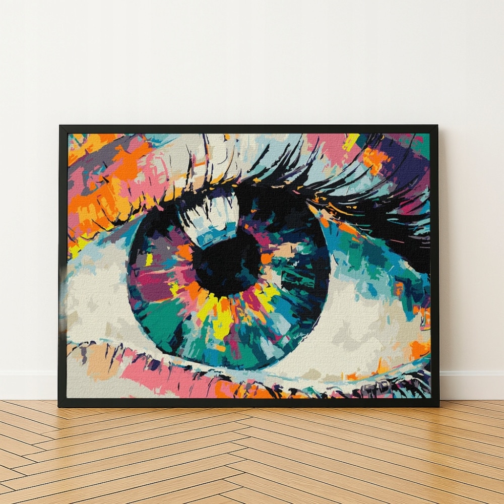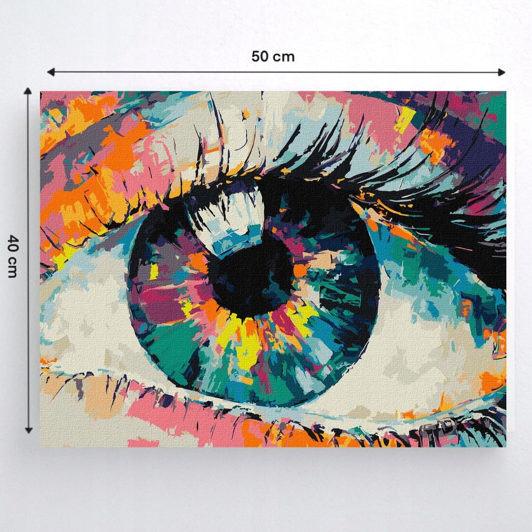 Set Pictura pe Numere cu Rama, Ochiul Curcubeu, Nerd Hunters, Panza, Vopsele Acrilice, Pensule, 50 cm x 40 cm