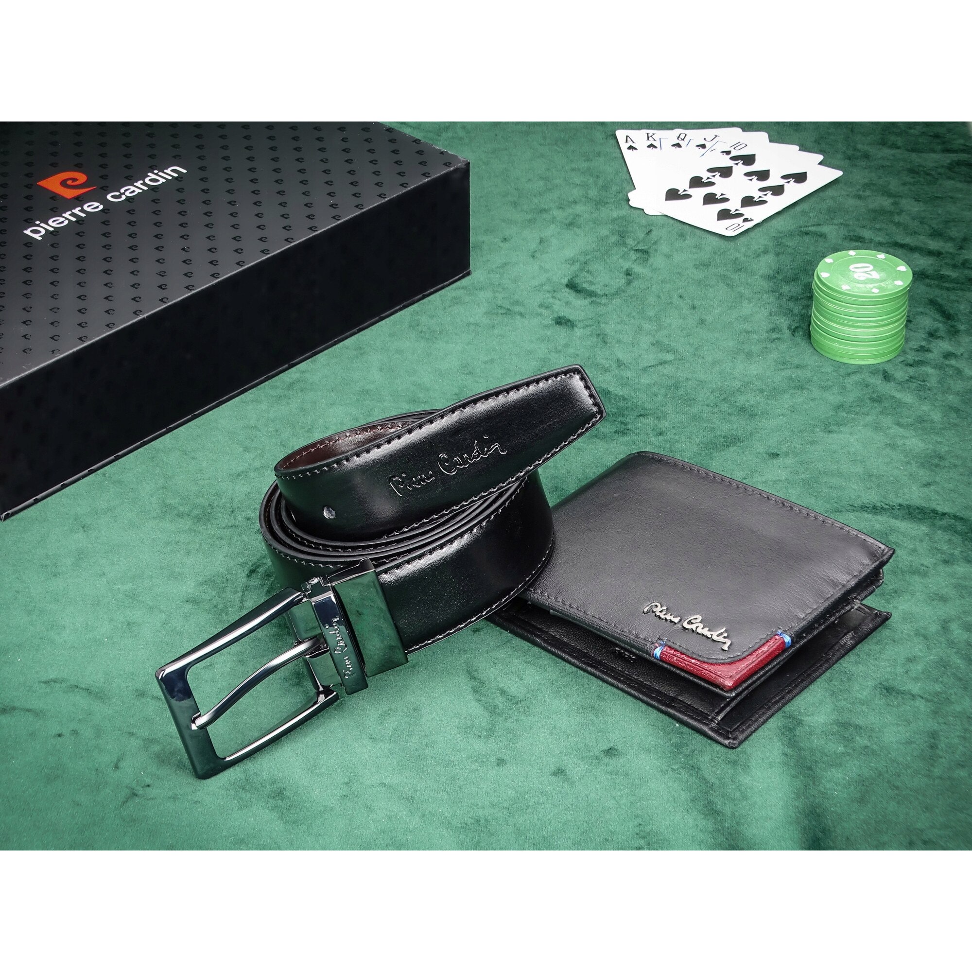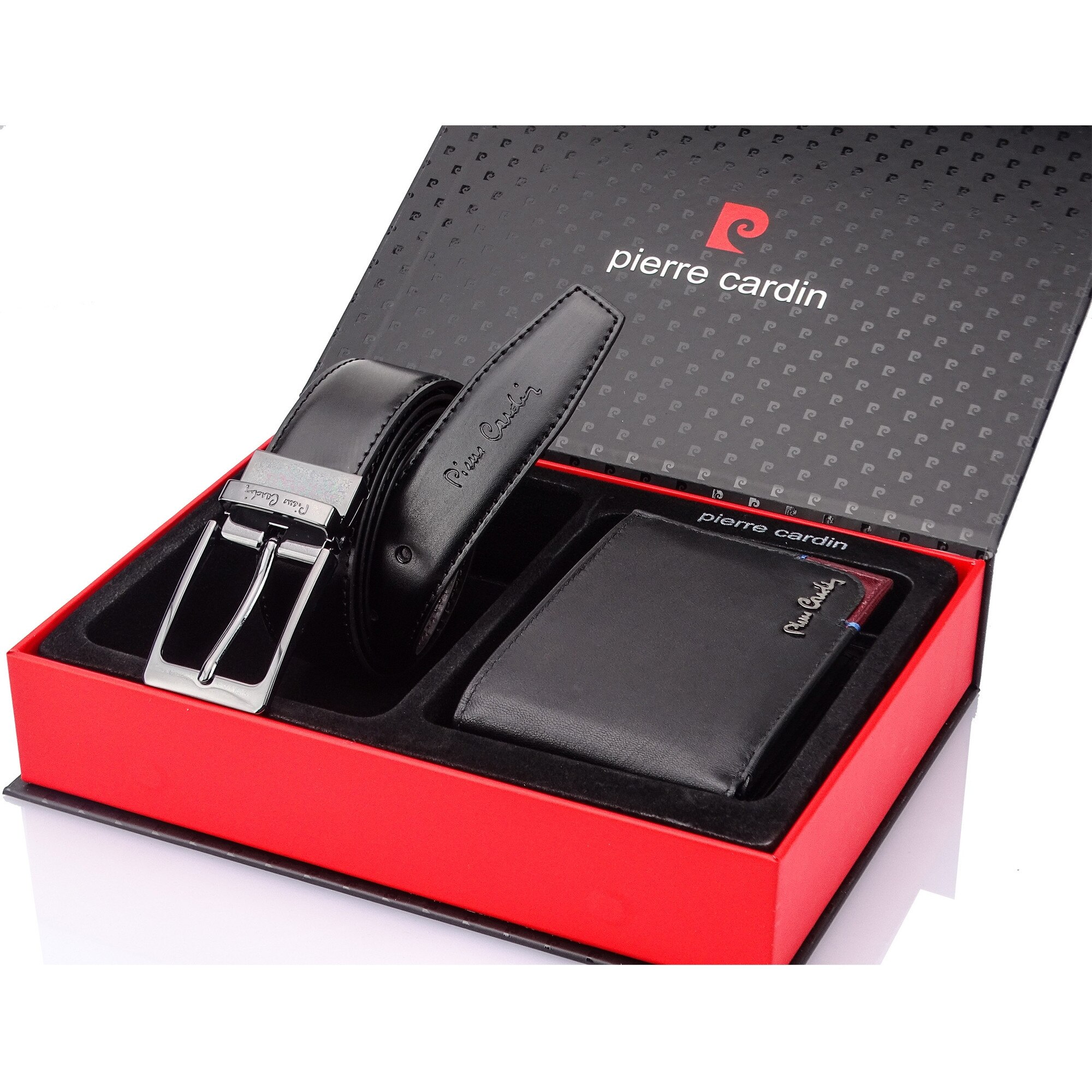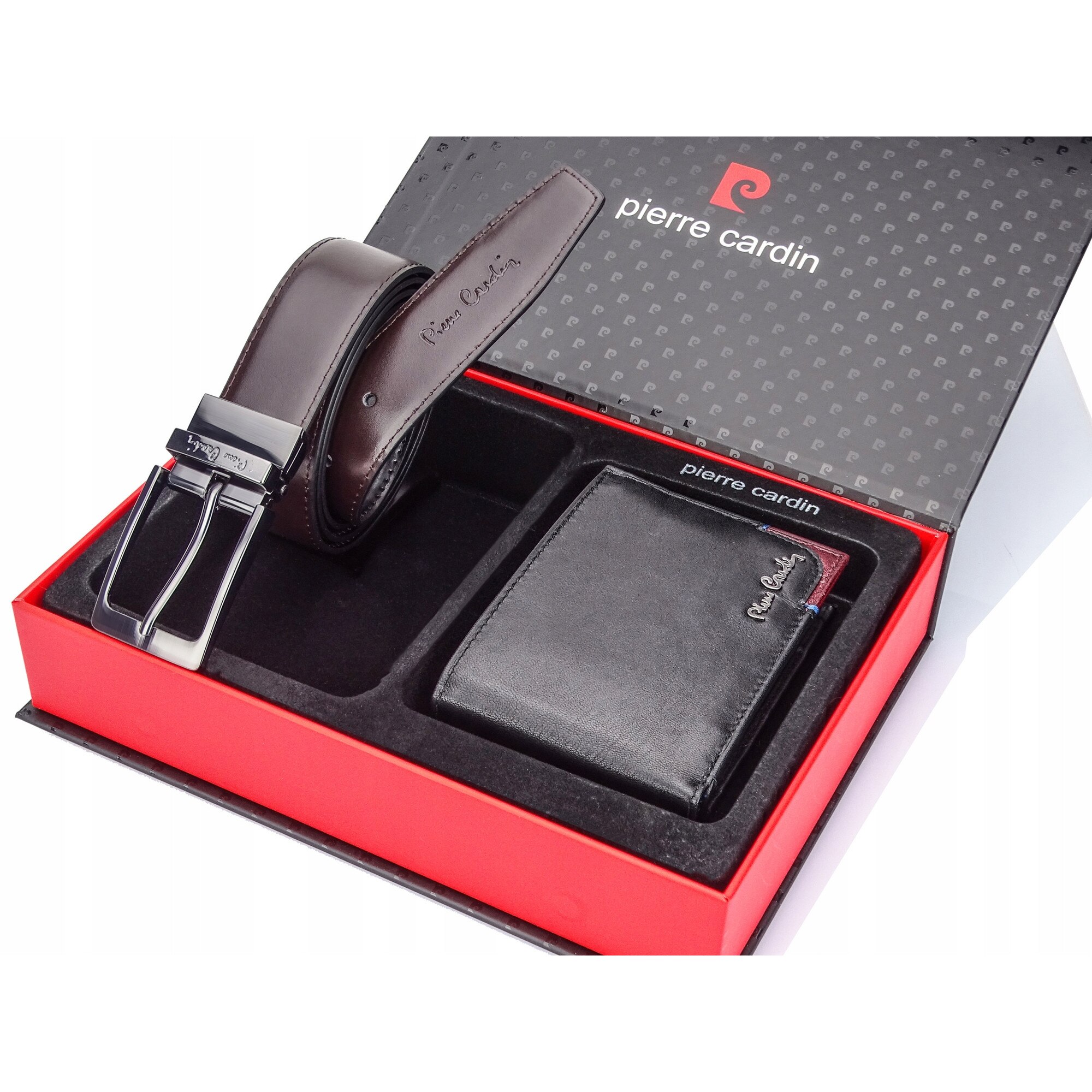 Pierre Cardin - Set Piele: Portofel Elegant cu Protectie RFID si Curea Reversibila Negru/Maro, Marimea 115