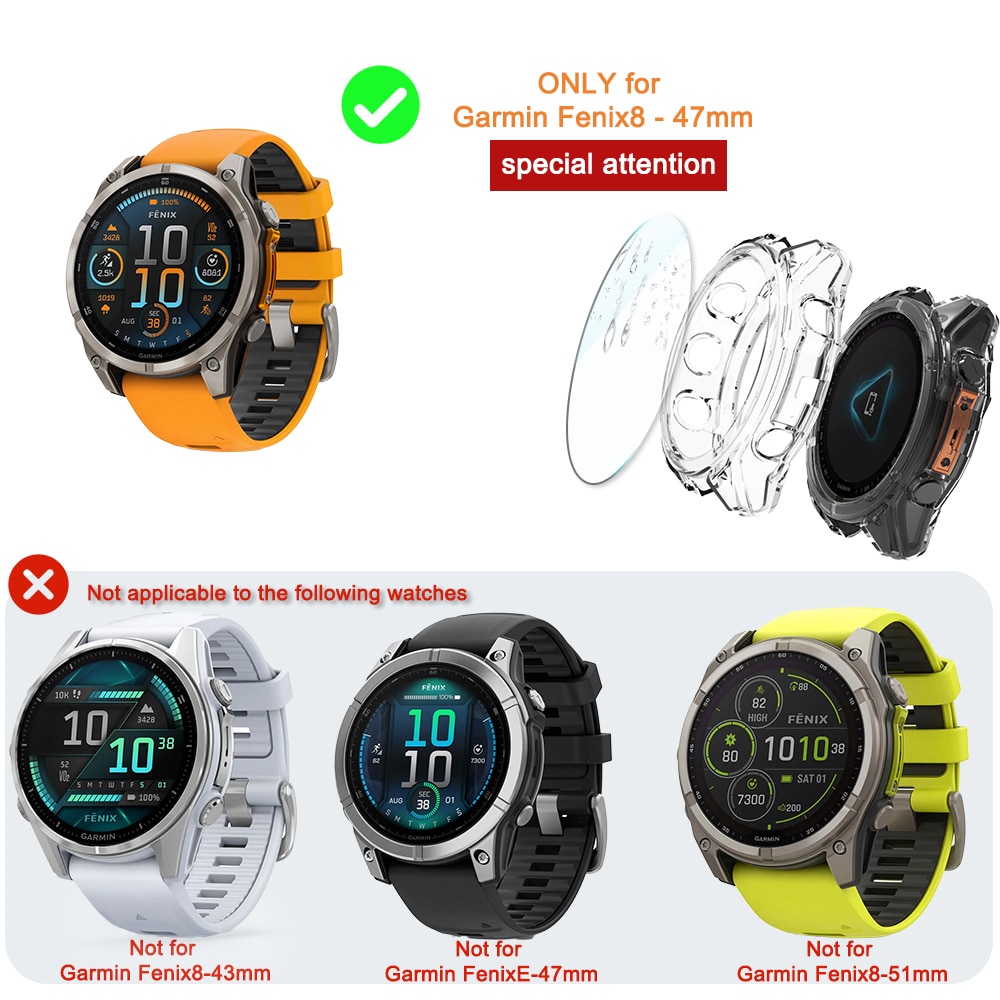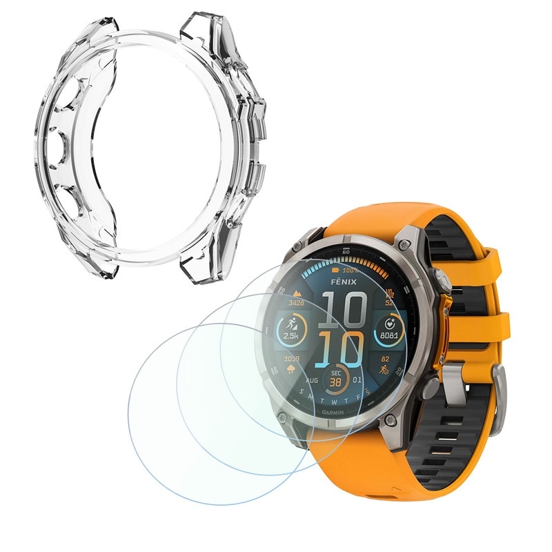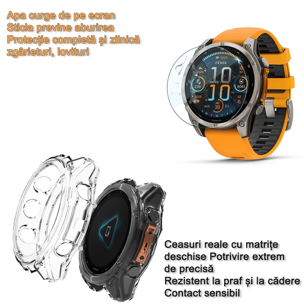 Set protectie ecran si carcasa pentru Garmin fenix 8 47mm, sticla securizata 9H, TPU moale, impermeabil, 4 piese