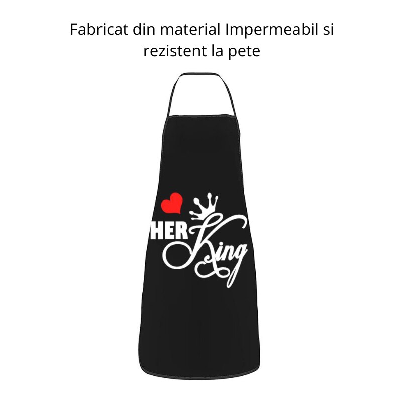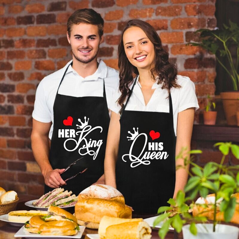 Set sorturi bucatarie King & Queen, accesorii gatit pentru cupluri, sorturi elegante si rezistente, protectie impotriva murdariei, marime ajustabila, design modern si confortabil, negru