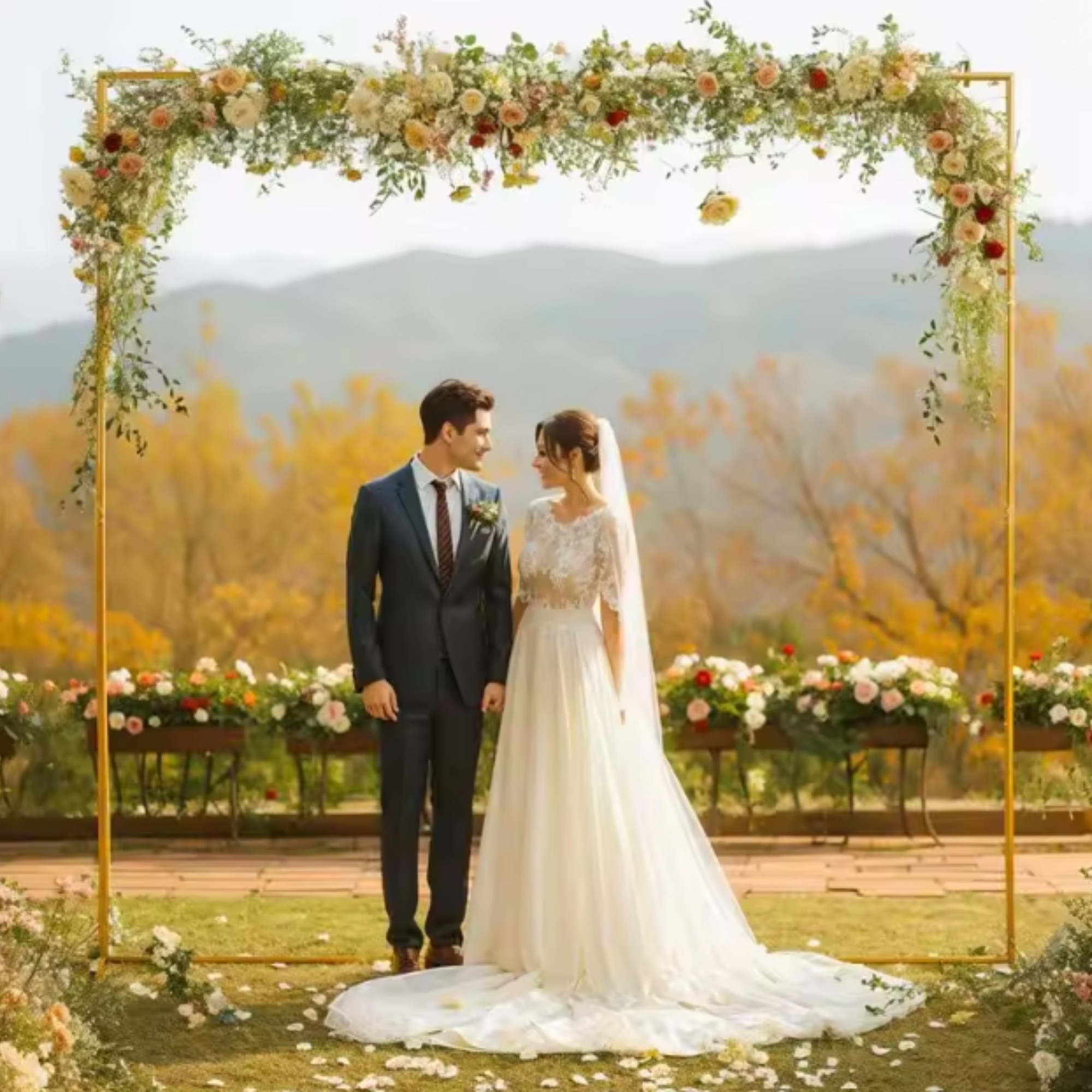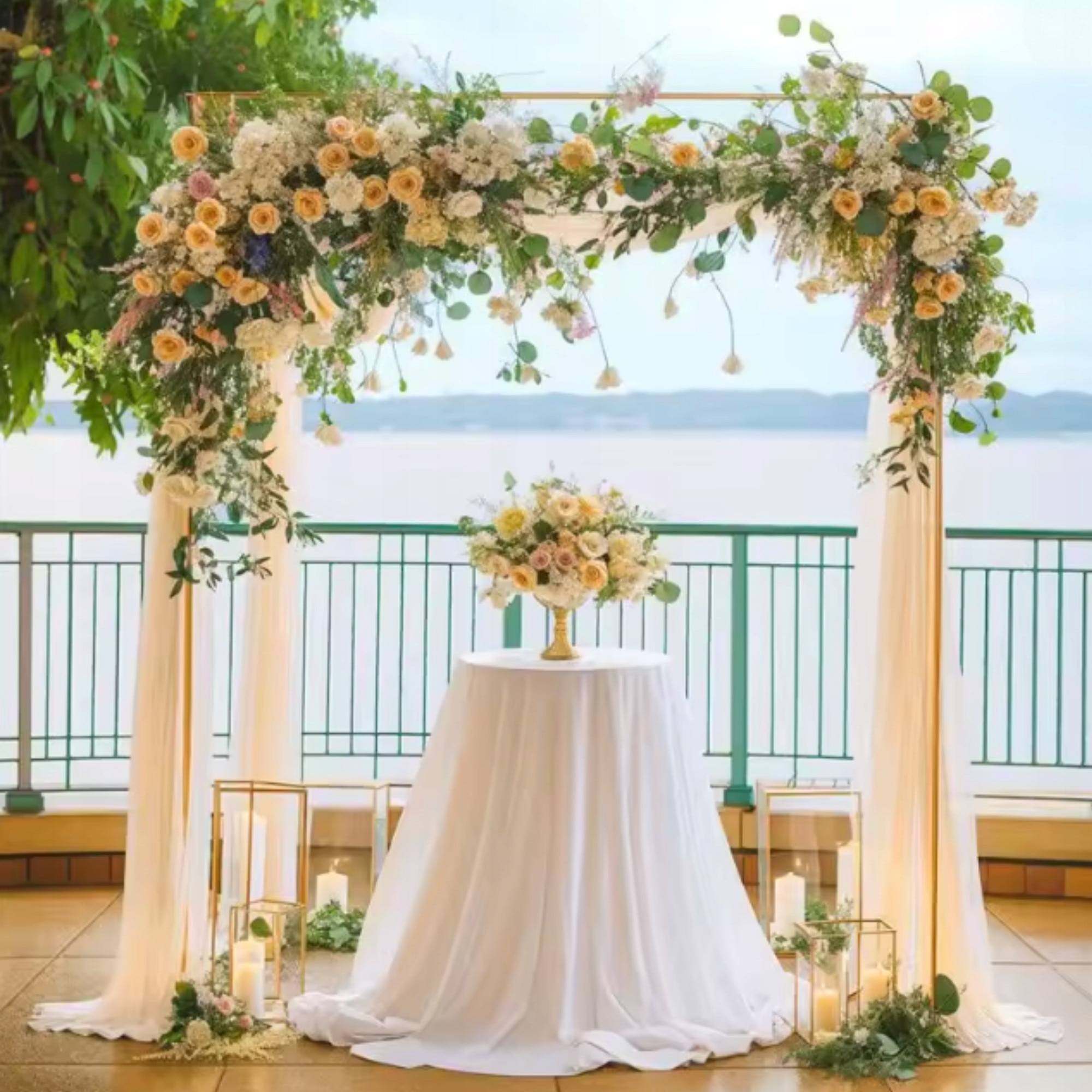 Set Suport Pentru Baloane, Inaltime: 2 M, Latime: 2 M, Culoare: Auriu, Material: Metal, 2 M X 2 M, Auriu, Structura Metalica Rezistenta, Ideal Pentru Decor Nunta, Botez Sau Evenimente Festive, Forma Patrata Stabila Si Usor De Montat