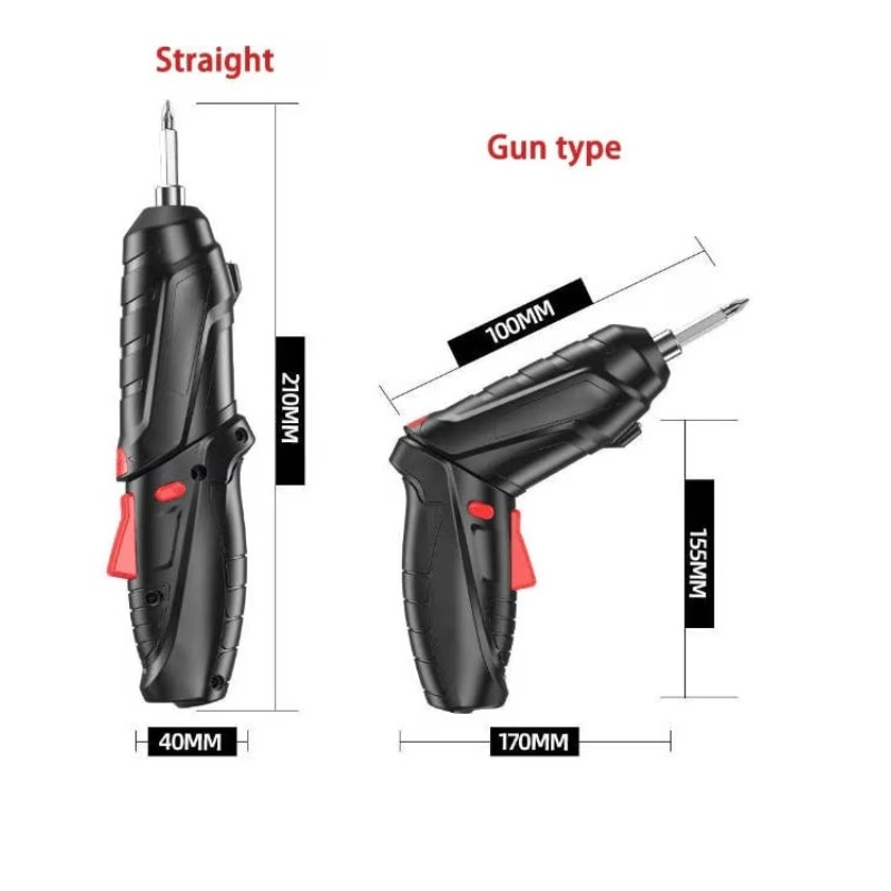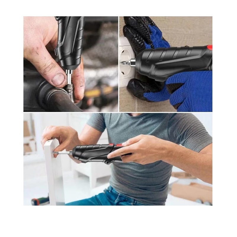 - 2 moduri manuale: tineti produsul cu o mana si apasati butonul din partea de sus a rasucirii cu degetul mare si rotiti-l pentru a o indrepta cu cealalta mana. Ideal pentru insurubare in spatii inguste si gauri oarbe. Buton inainte/inapoi care permite surubelnitei sa se roteasca intre dreapta (inainte) si stanga (inapoi). Design fara fir si iluminare cu LED: surubelnita electrica fara fir: designul fara fir va permite sa faceti proiecte de foraj electric oriunde si in orice colt.