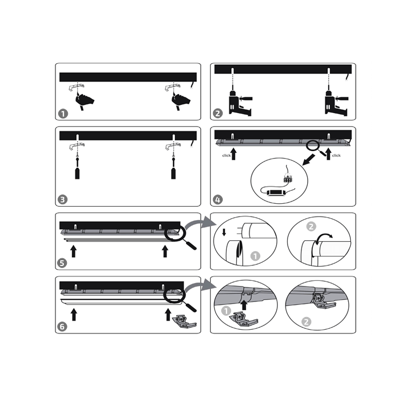 Kitul a fost proiectat pentru o instalare usoara si convenabila. De asemenea, au fost pregatite instructiuni de instalare detaliate pentru a permite conectarea rapida si fara probleme a kitului. Kitul include elemente de fixare pentru instalarea rapida si fara probleme a corpului de iluminat ermetic.