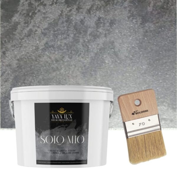 Setul este format din 2,5 L Vopsea Decorativa Solo Mio si o Pensula de 70 mm latime.
