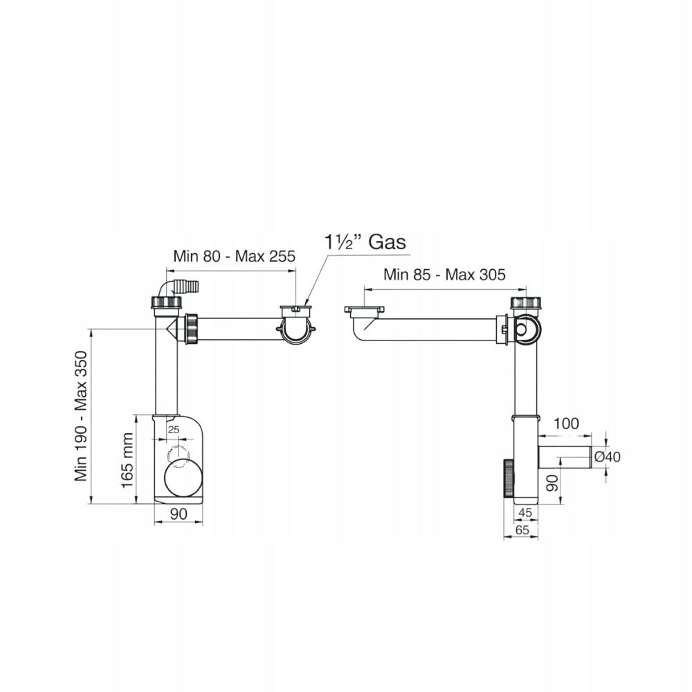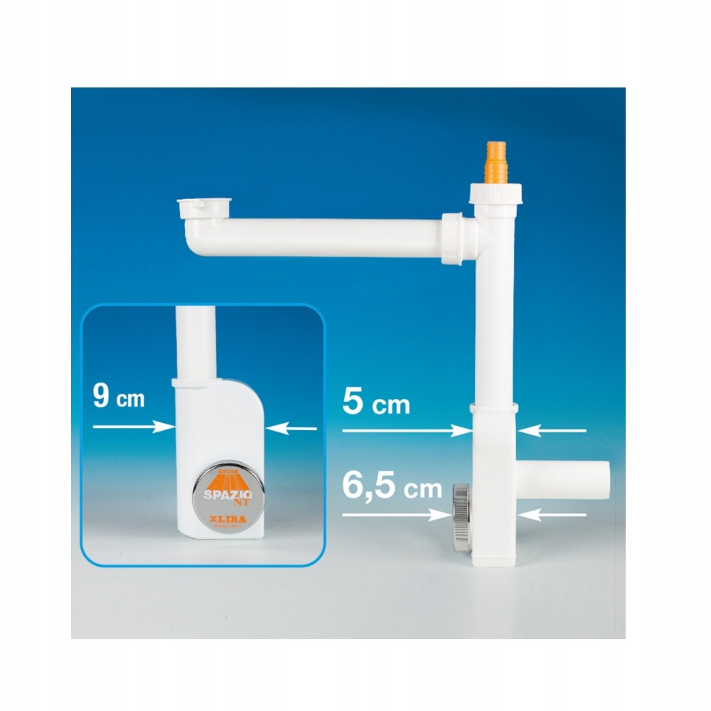 Sifon de chiuveta Lira, pentru bucatarie si baie, cu iesire pentru masina de spalat, 40mm, alb