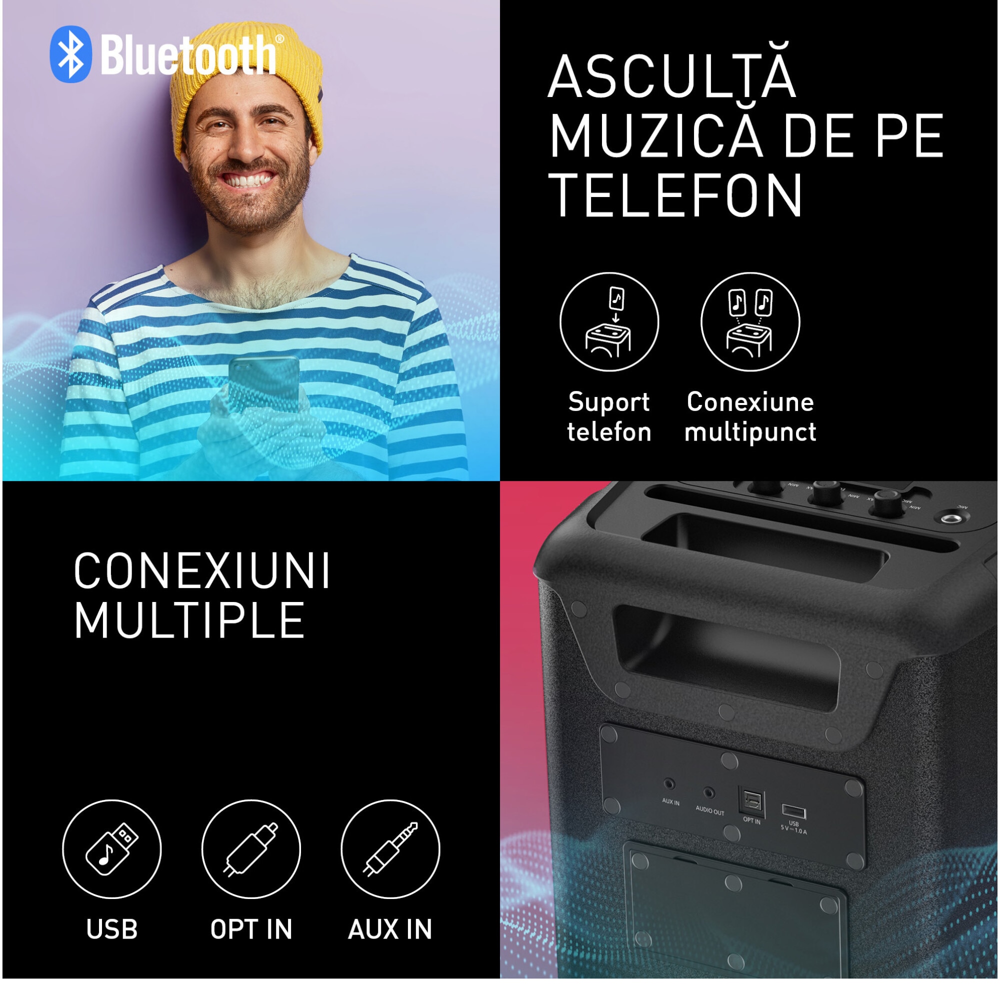 | Functii | Karaoke Control treble Control bass Party Lights |