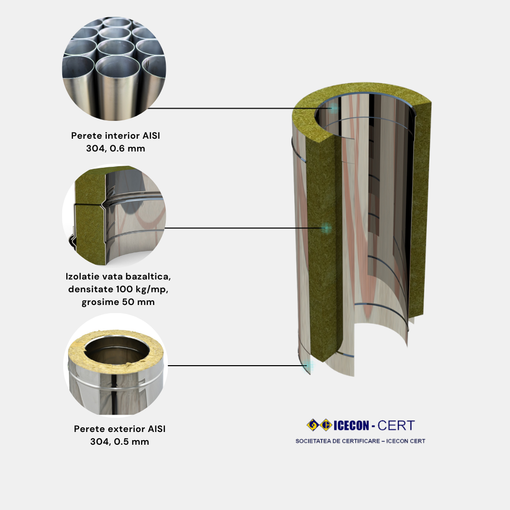 Sistem cos fum, Rogher, Inox izolat, diametru interior 160 mm, exterior 260 mm, lungime 6 m, 2T