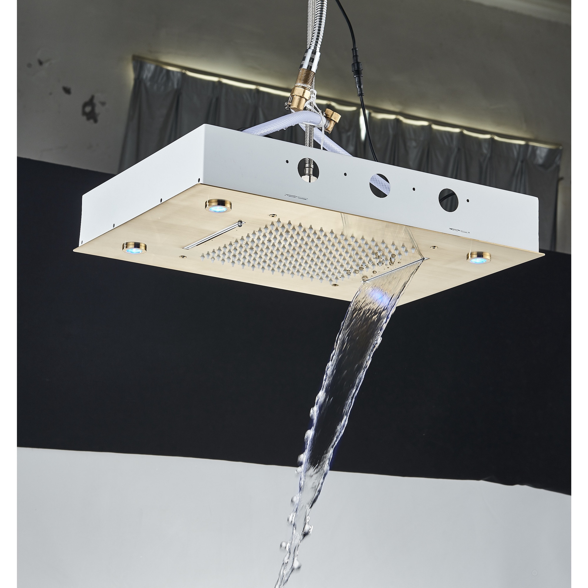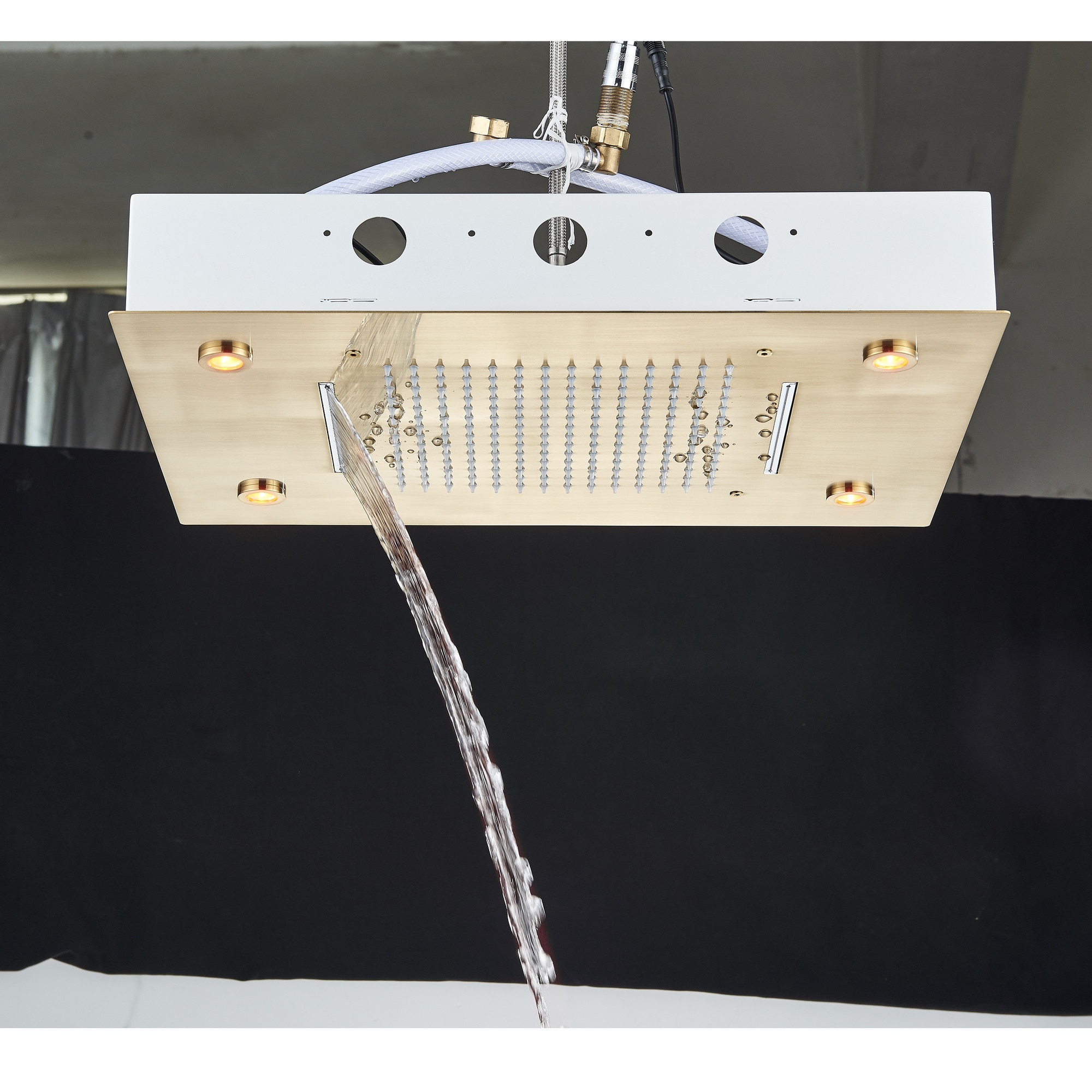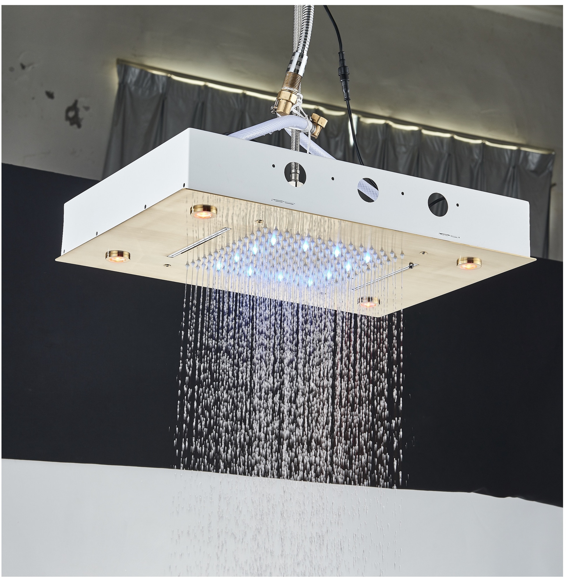 Sistem de Dus Baie BisDesign®, Incastrabil cu Termostat, Functie SPA si LED, Finisaj Auriu Mat, Para Dus Tavan 35x49 cm
