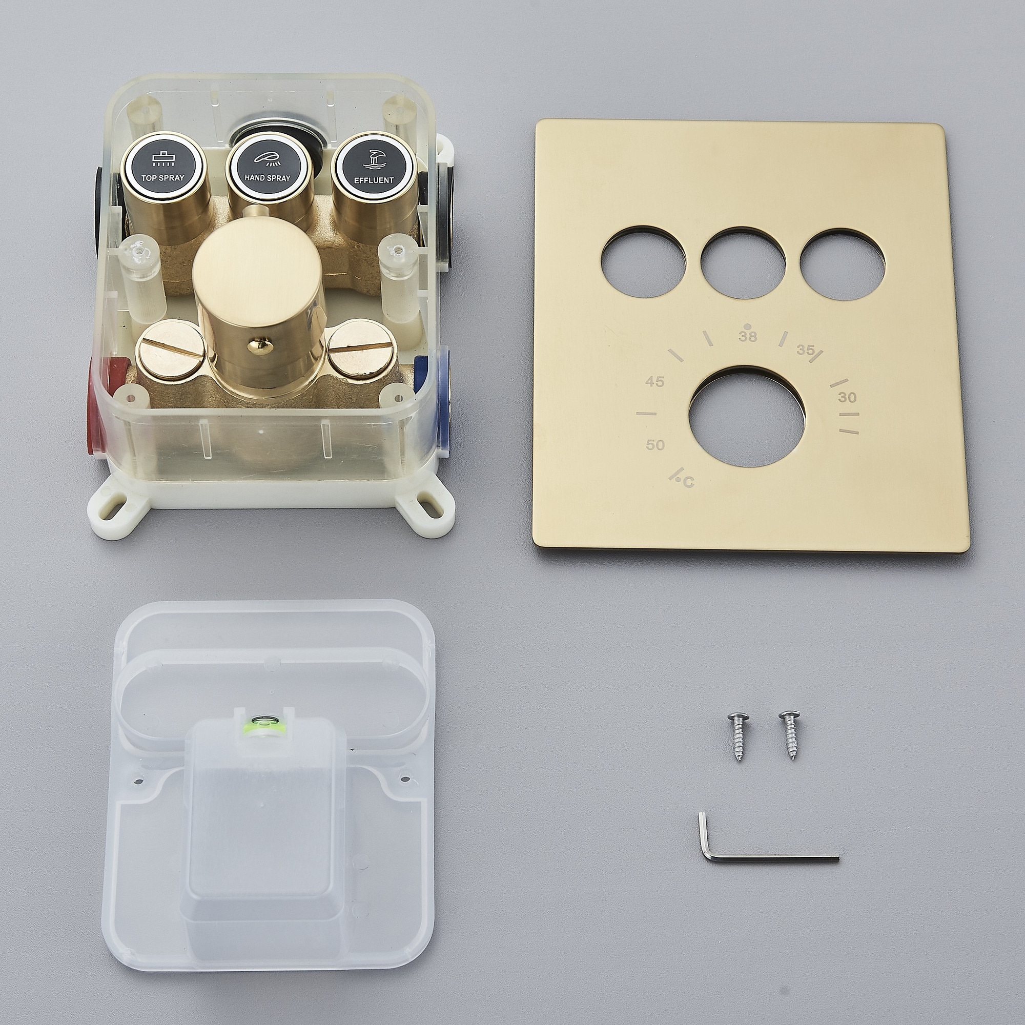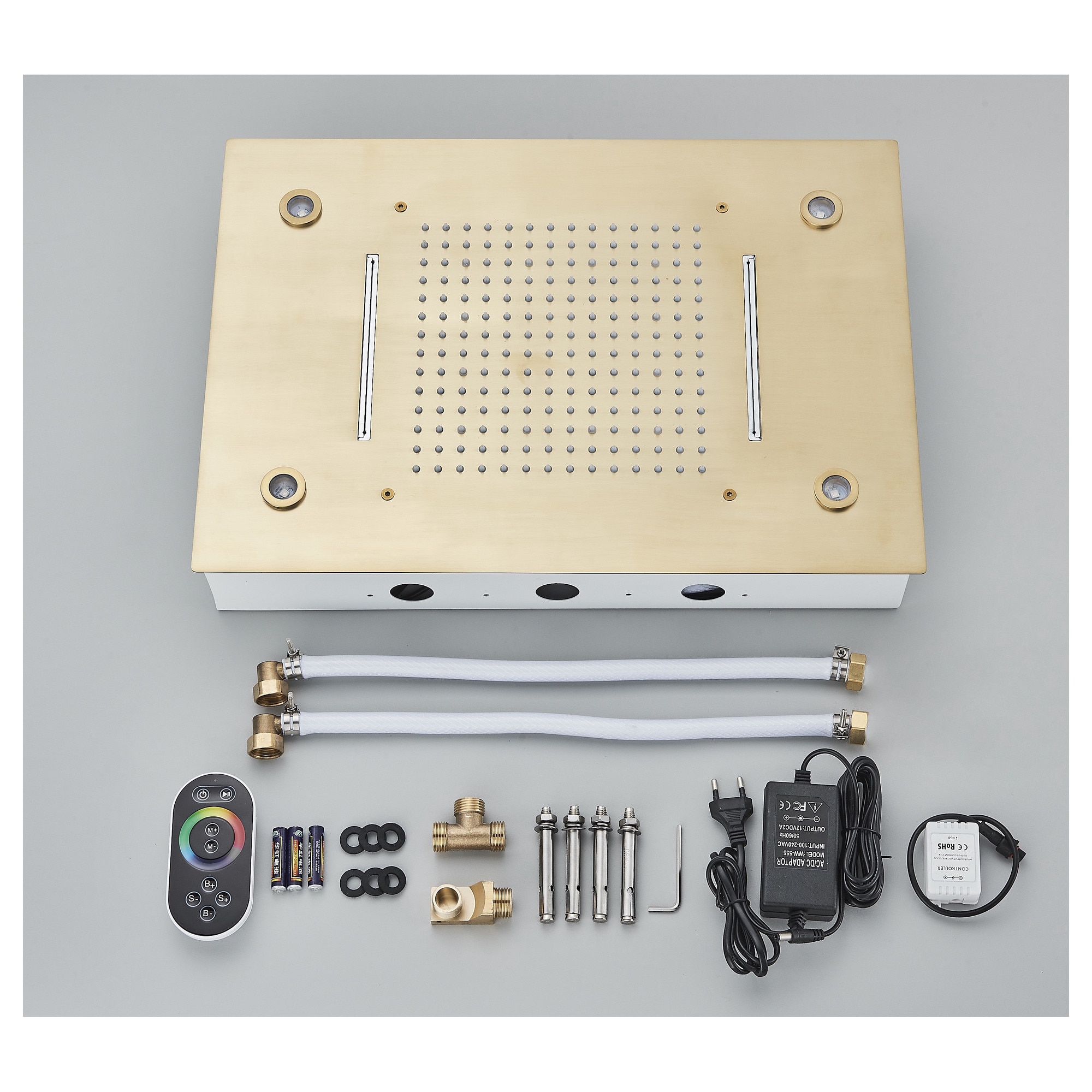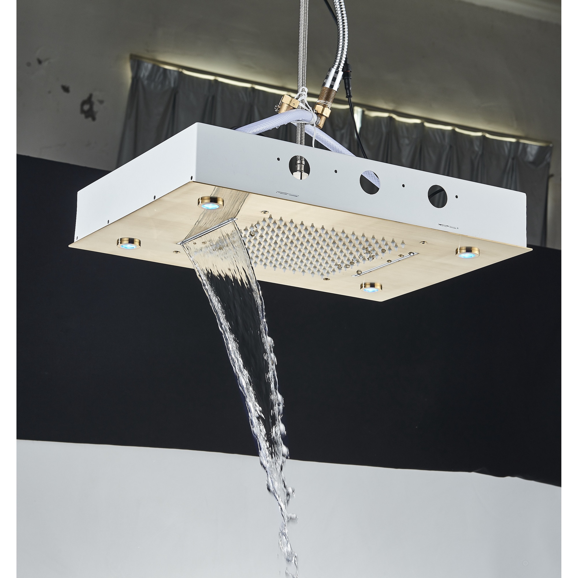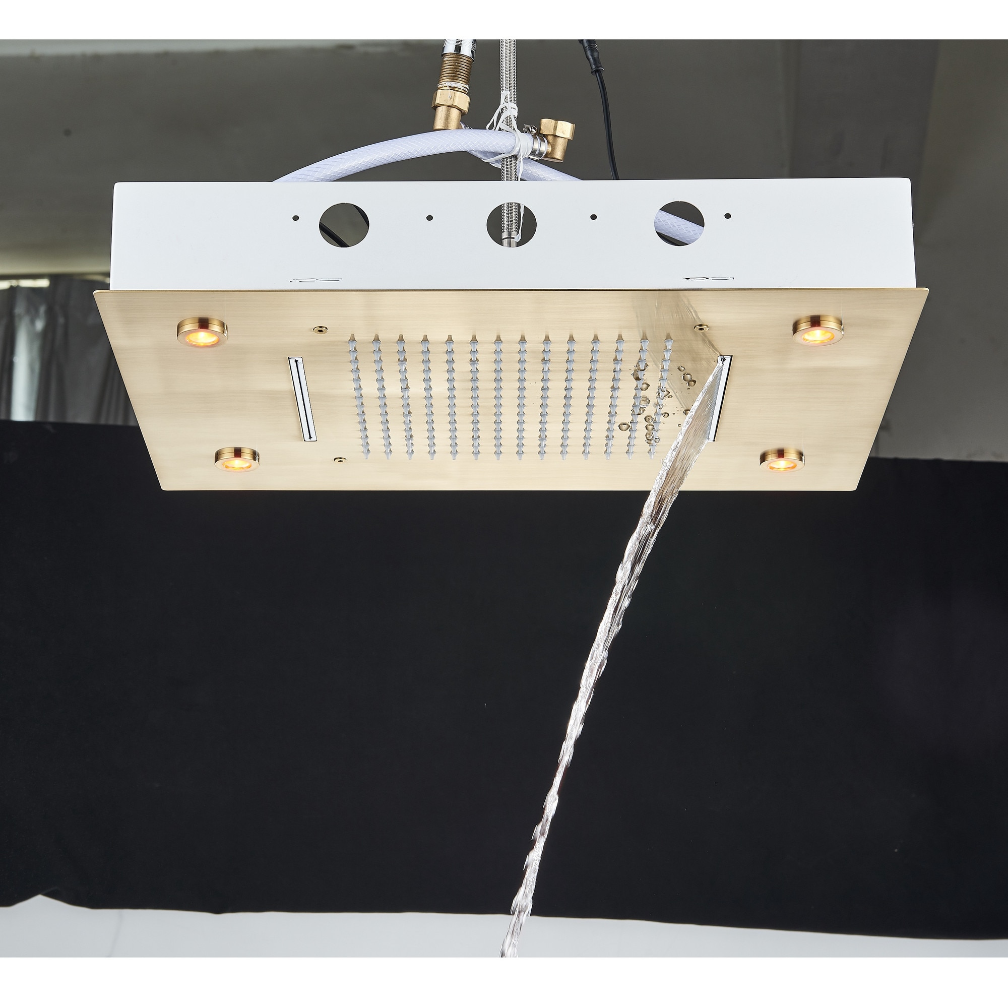 Sistem de Dus Baie BisDesign®, Incastrabil cu Termostat, Functie SPA si LED, Finisaj Auriu Mat, Para Dus Tavan 35x49 cm