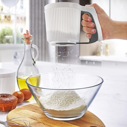 Sita mecanica tip cana pentru cernere faina, zahar pudra, cacao, Alb, 12 x 11 cm