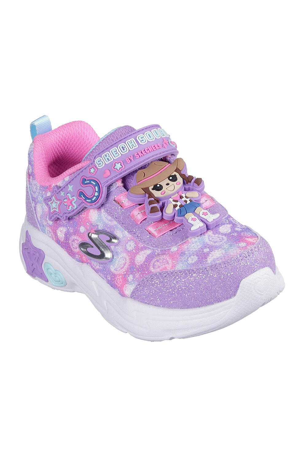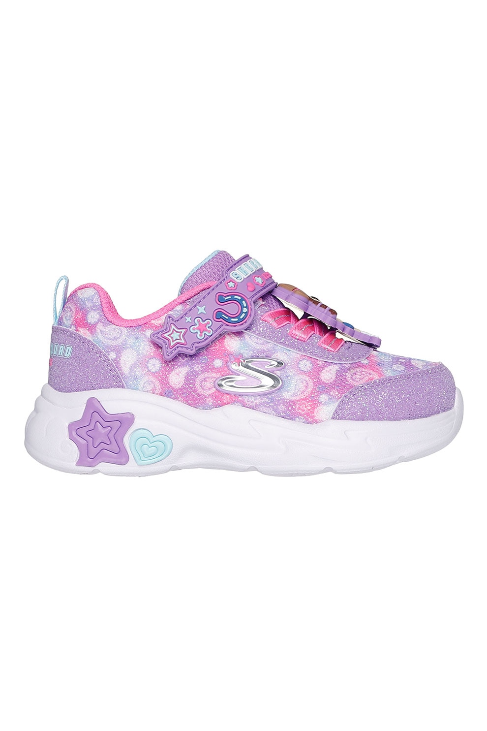 Skechers - Pantofi sport demi-wedge cu aspect stralucitor Snuggle, Albastru lavanda, 22 EU