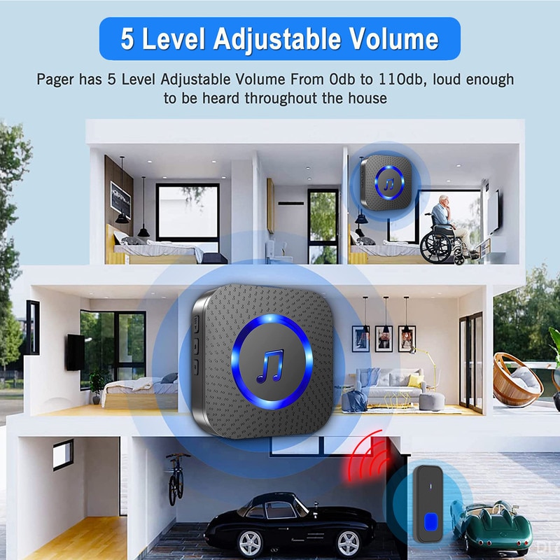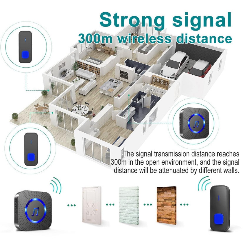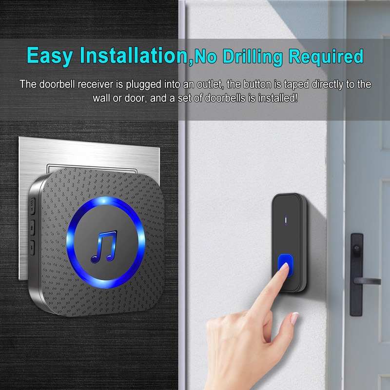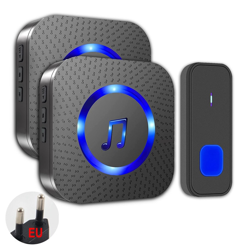 Sonerie wireless, 2 receptoare, 1 buton, 55 melodii, volum ajustabil 5 niveluri, IP55, 300m, negru