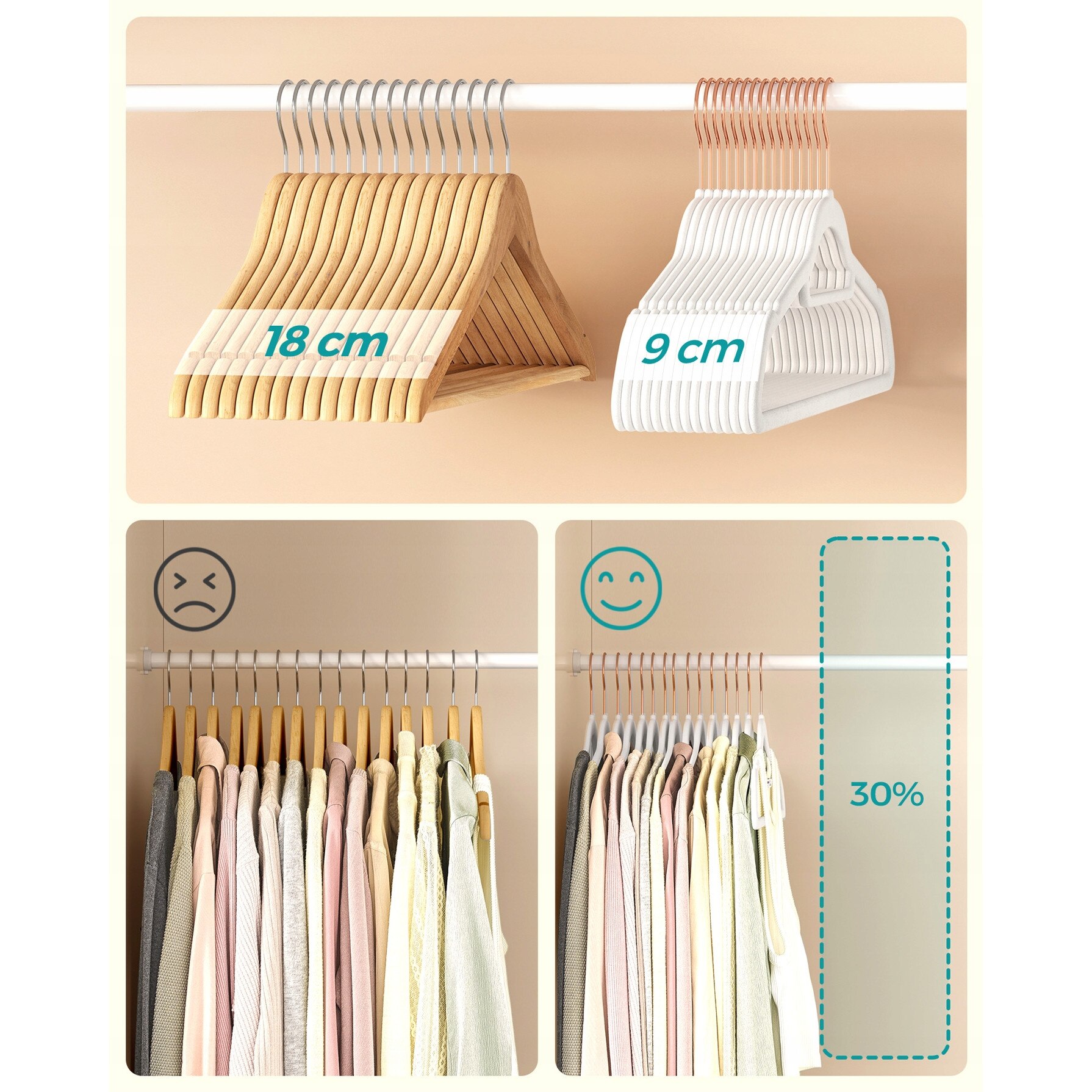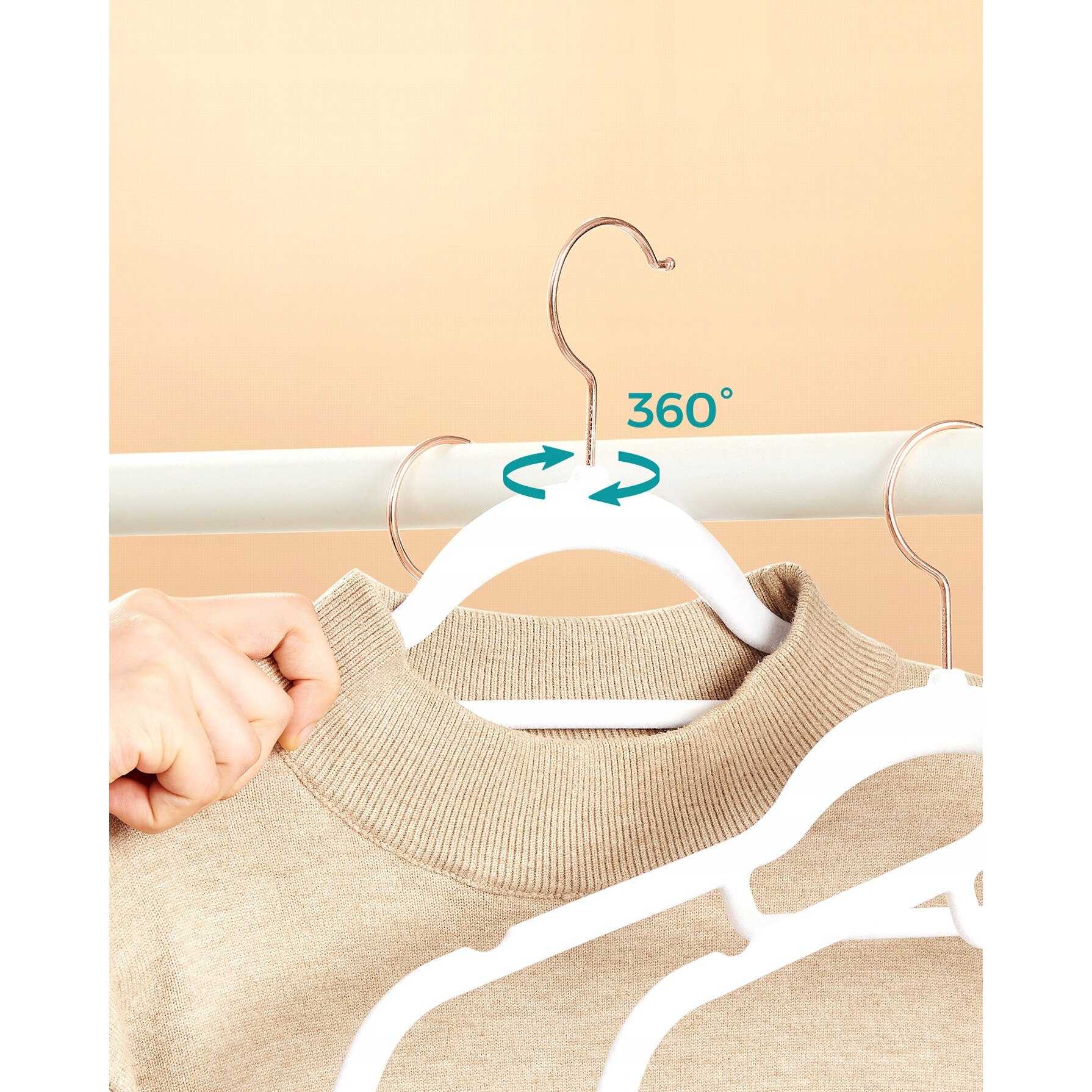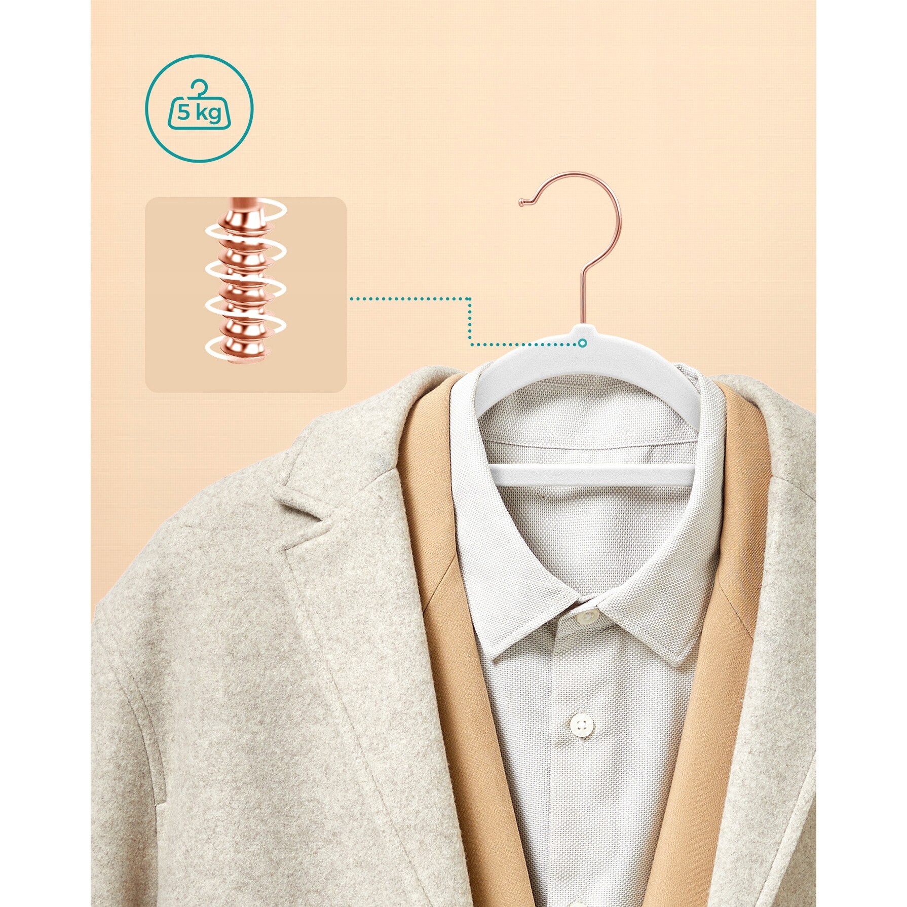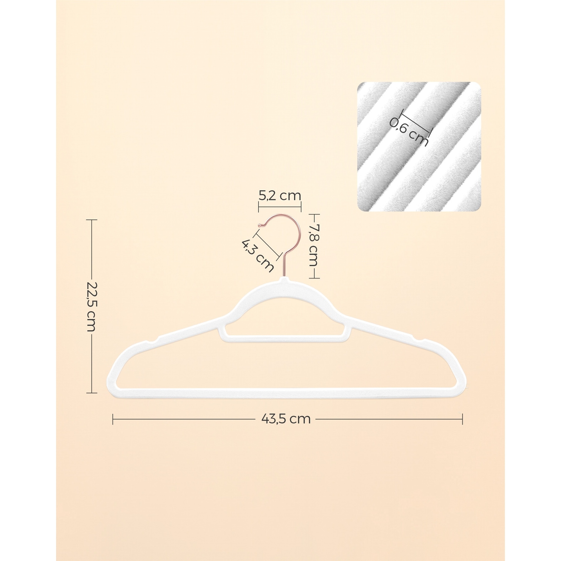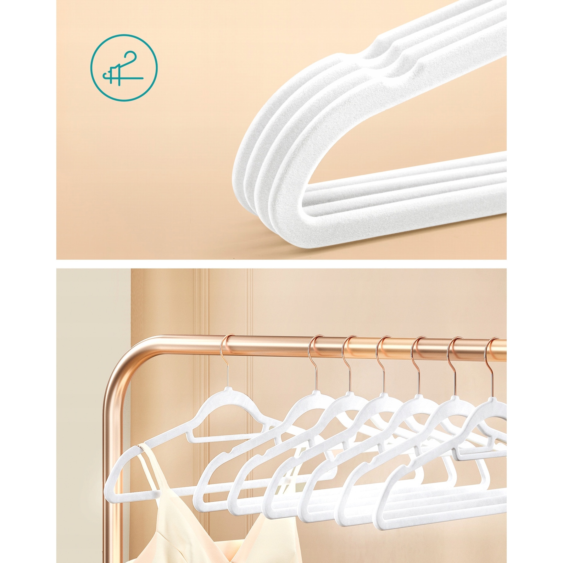 SONGMICS Set de 50 de umerase pentru haine, anti-alunecare cu catifea, bara de cravata si carlig pivotant, 43,5 cm, alb+