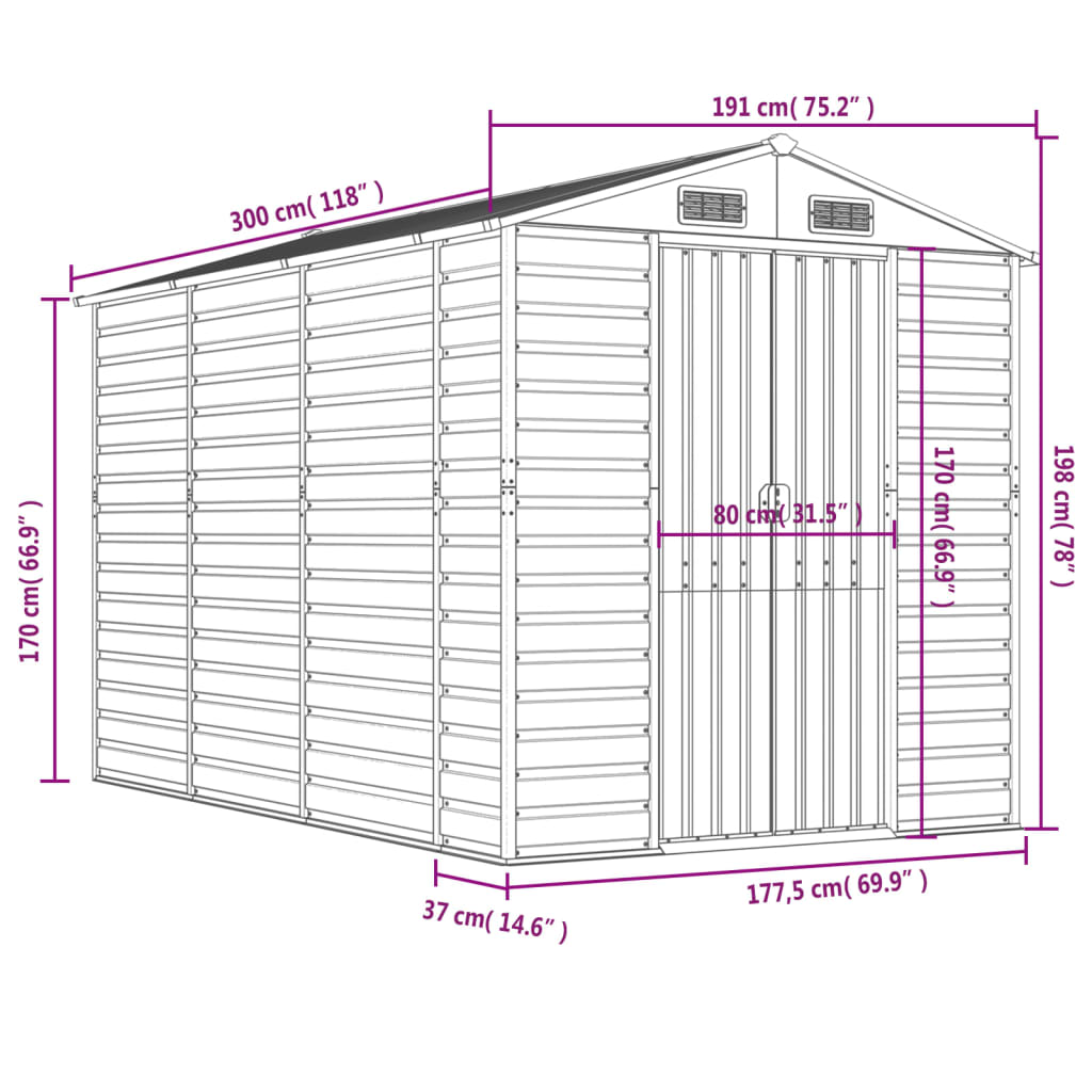 Sopron de gradina vidaXL, maro deschis, 191x300x198 cm, otel galvanizat, 42.22 kg