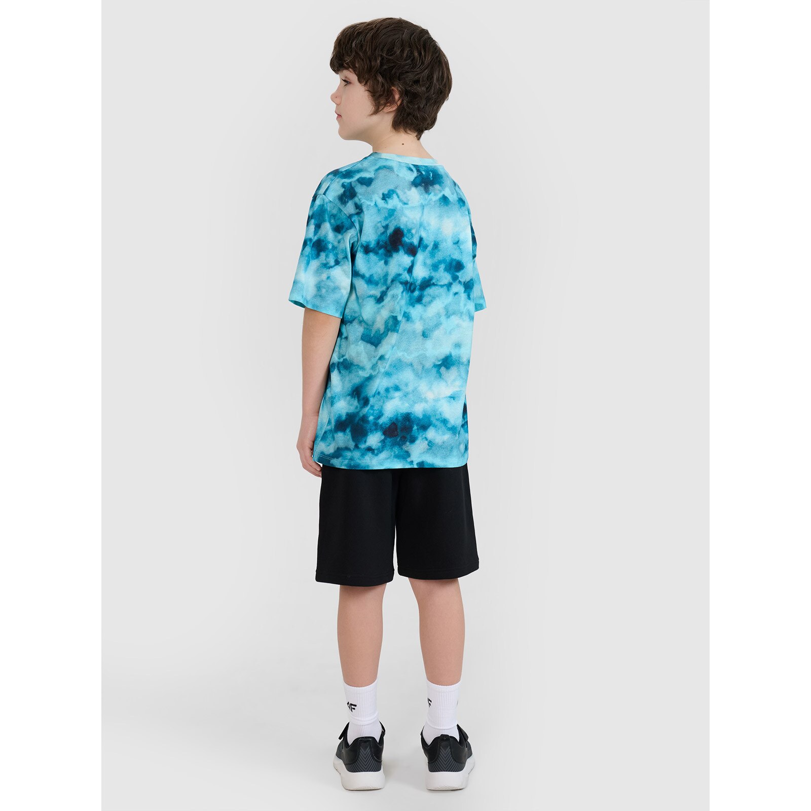 Sort de Trening Baieti 4F Junior Negru - SPORTSTYLE, Bumbac 80%, Oversize, Imprimeu "Cold Waves", Marime 158, Colectie SS25