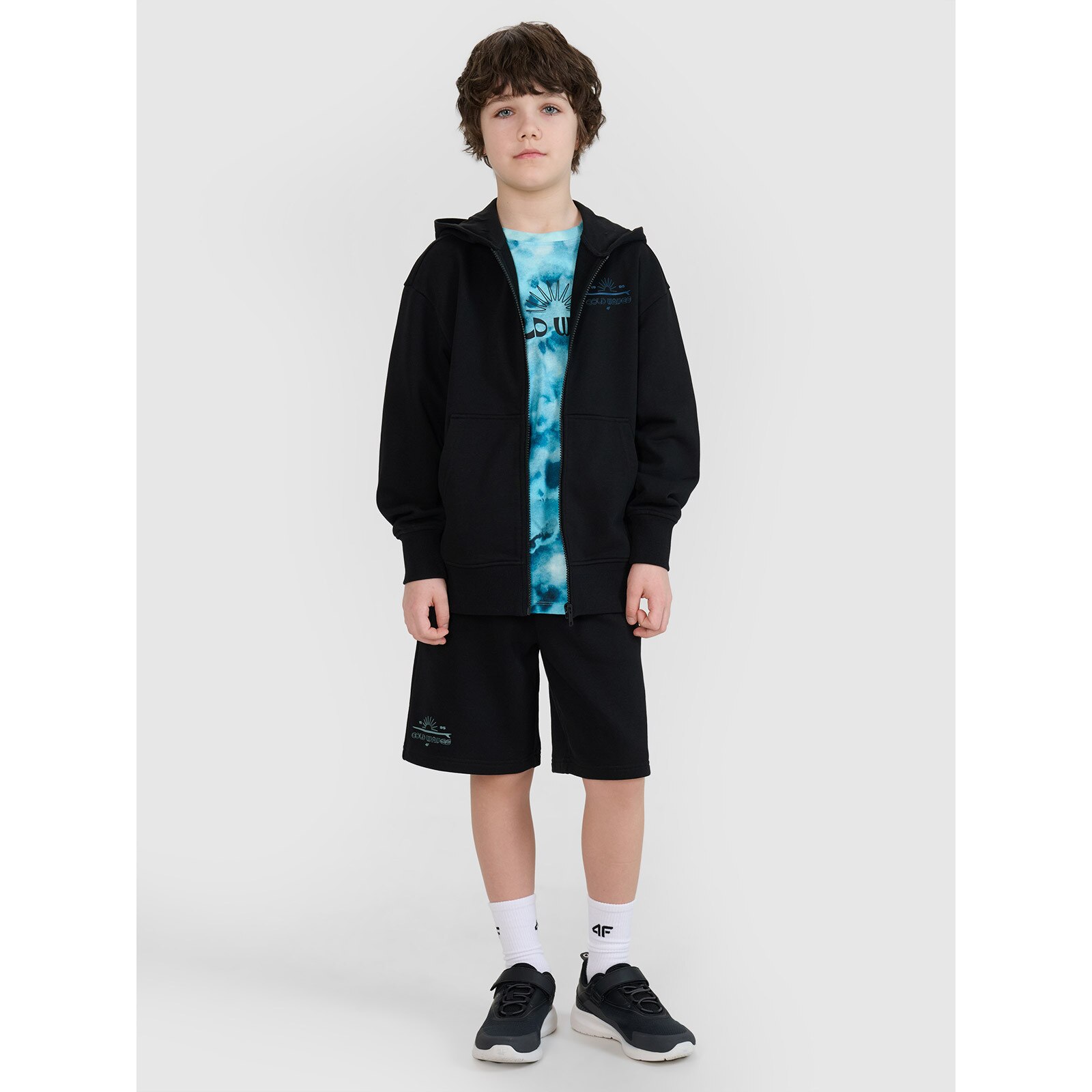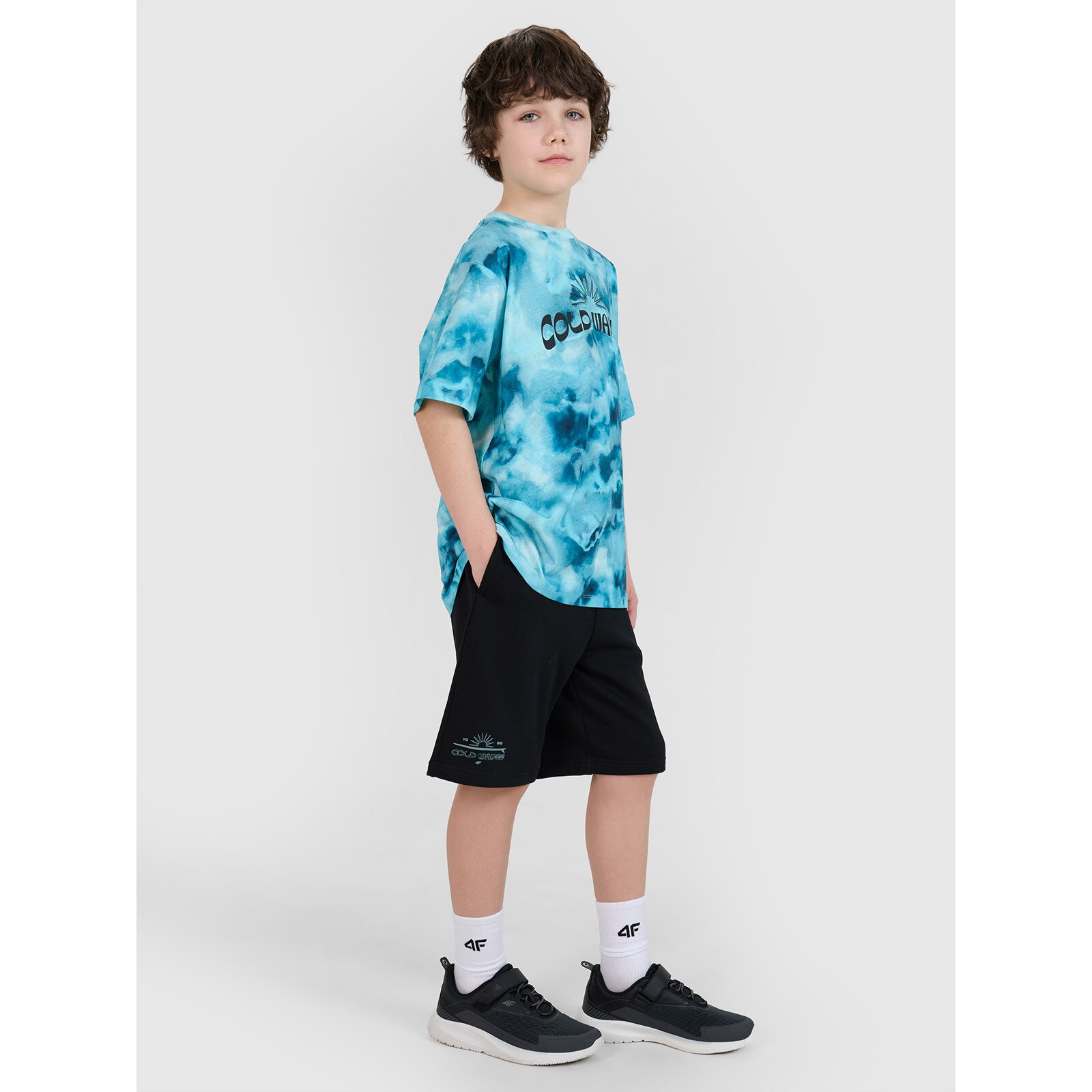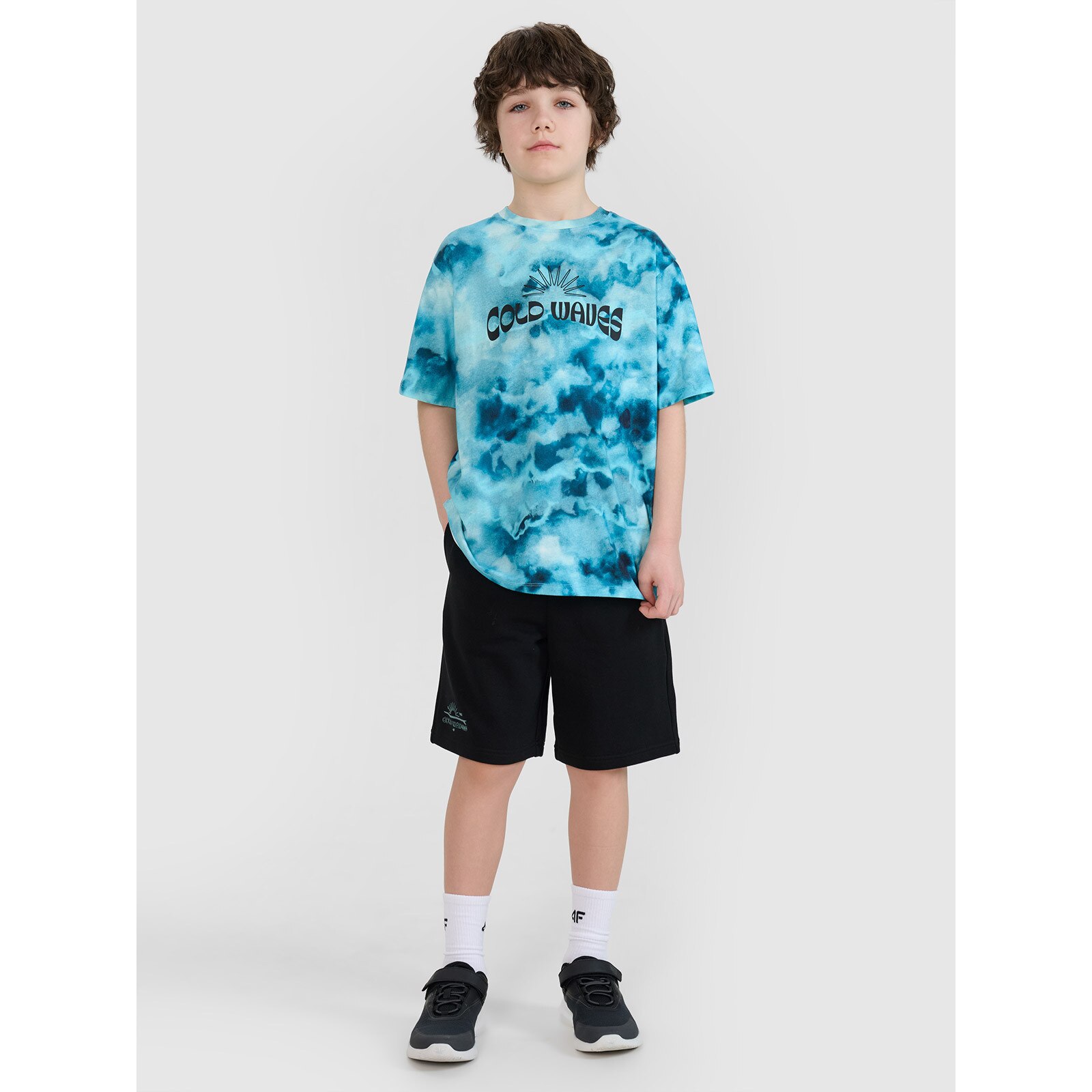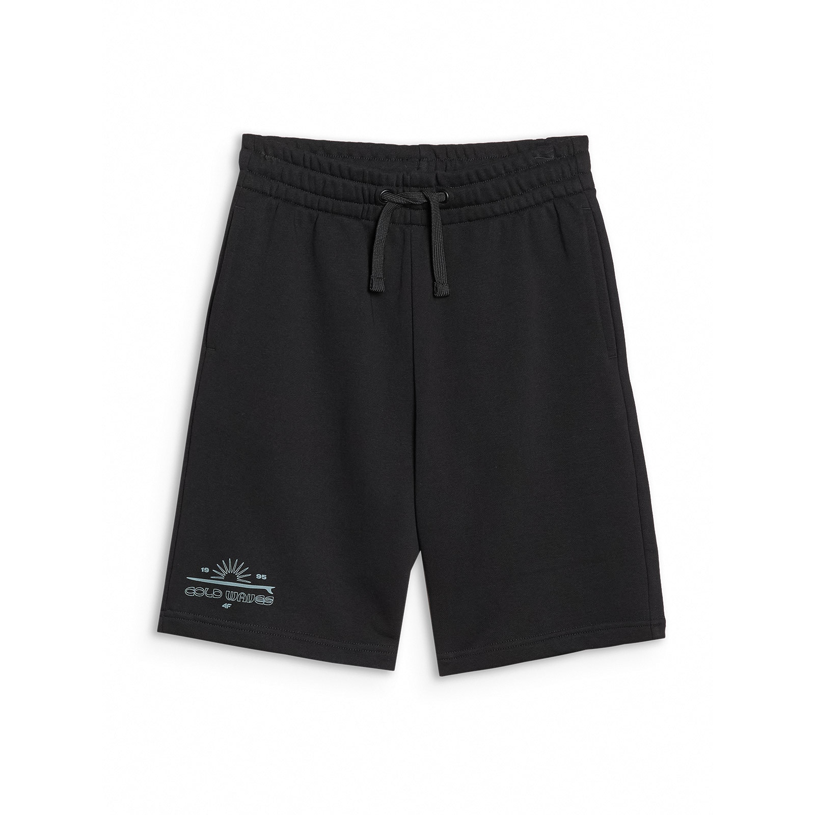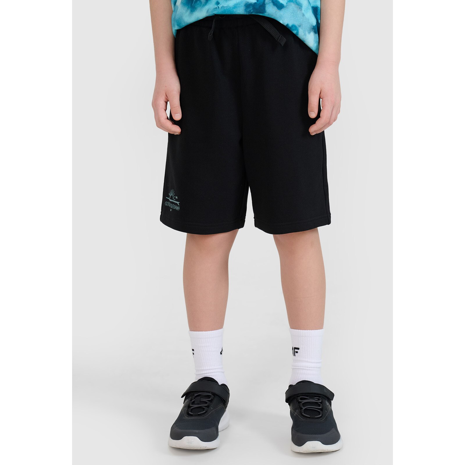 4F - Sort de Trening Baieti Junior Negru - SPORTSTYLE, Bumbac 80%, Oversize, Imprimeu "Cold Waves", Marime 158, Colectie SS25