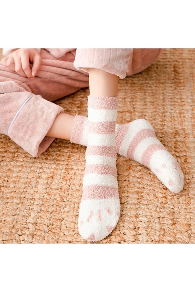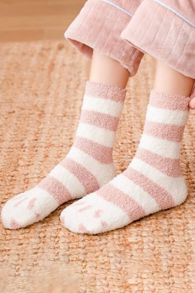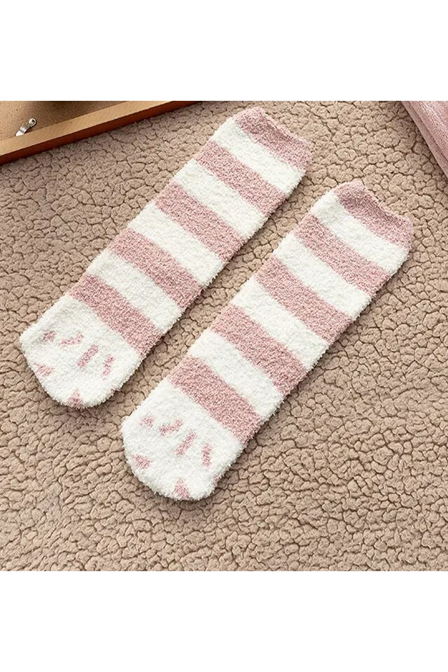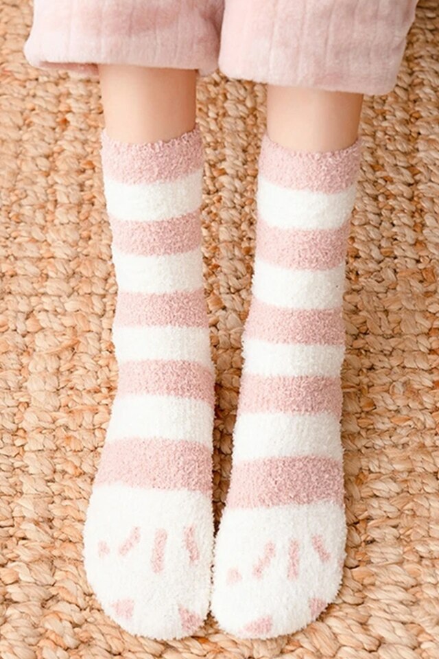 EFAYN.RO - Sosete dama, model pufos si calduros cu imprimeu labuta de pisica, tematica funny cat, marime 38 – 42, roz, EFAYN