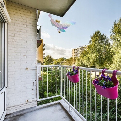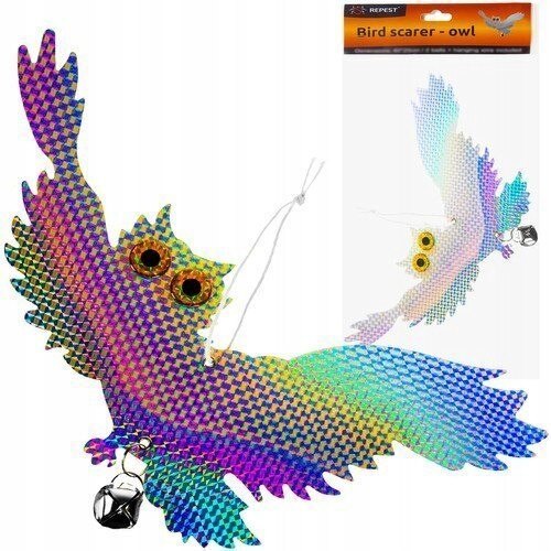 Sperietoare de pasari PrzydaSie, model bufnita zburatoare, argintie/holografica, 39x20cm