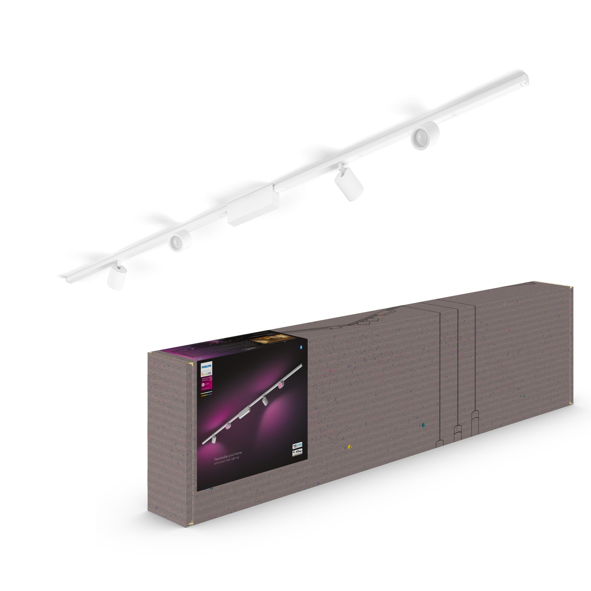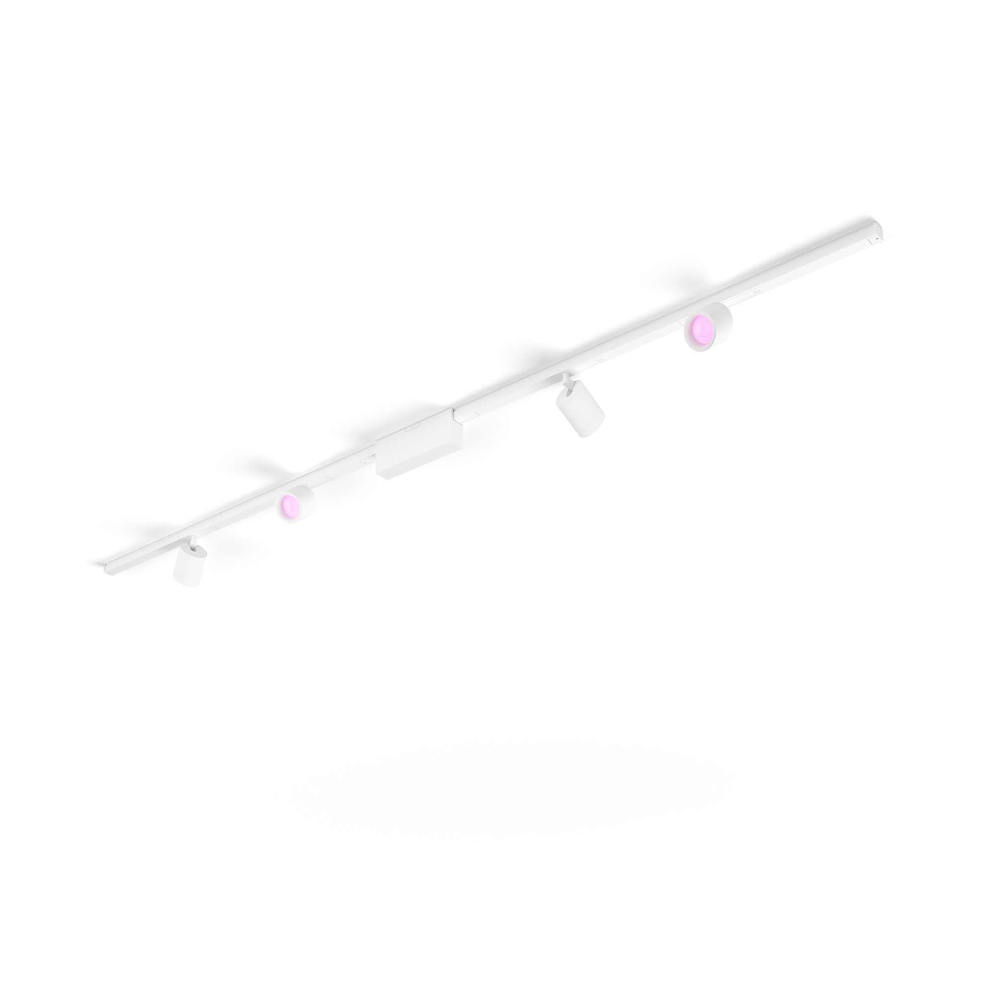 Spot luminos Philips Hue Perifo, kit de baza, 4 spoturi, Bluetooth si Zigbee, control vocal, bec 24V, LED RGB, lumina alba si colorata (2000-6500K), IP20, 221.5cm, Alb