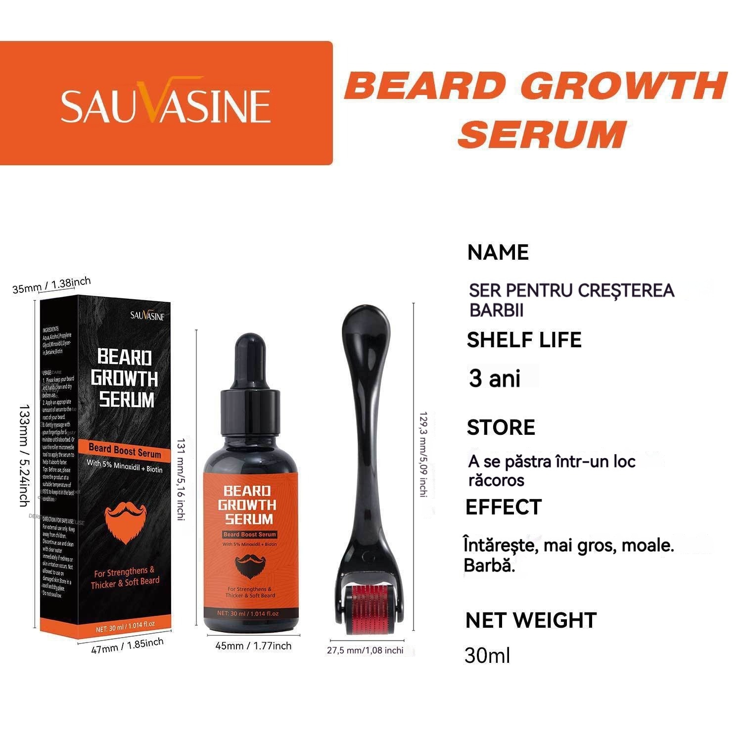 Spray de stimulare a cresterii barbii, SAUVASIN, Ser pentru barba cu ingrediente active si aplicator cu role, Ser pentru cresterea barbii, Promoveaza eficient cresterea barbii, intareste si imbunatateste duritatea si frumusetea barbii, 30 ml
