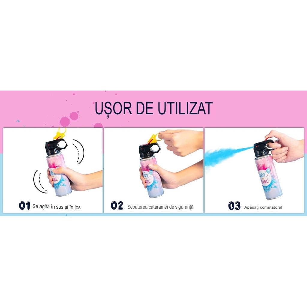 Spray Gender Reveal, 260 ml, din Amidon de Porumb, Dezvaluire Gen Bebelusi, Albastru