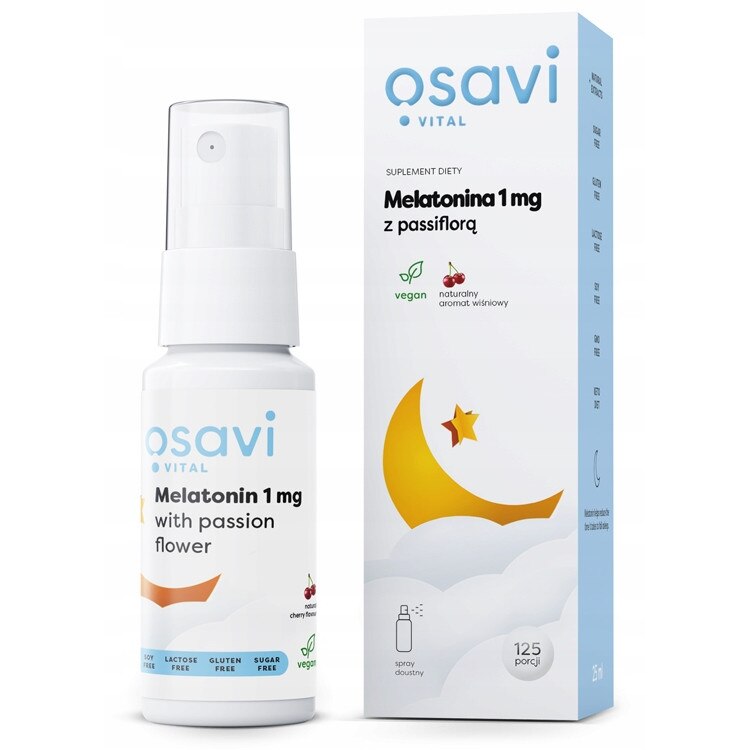 Spray Melatonina 1 mg Osavi, cu extract de Passiflora si Melisa, aroma de visina, 25 ml