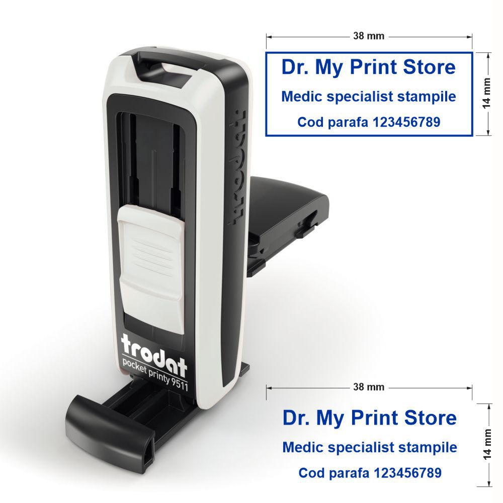 Stampila buzunar Trodat Pocket Printy 9511, parafa medic, tus albastru, 38x14 mm, culoare alb
