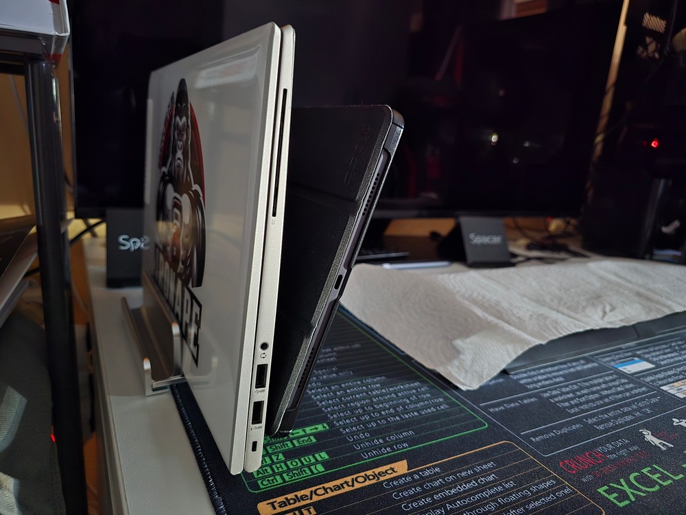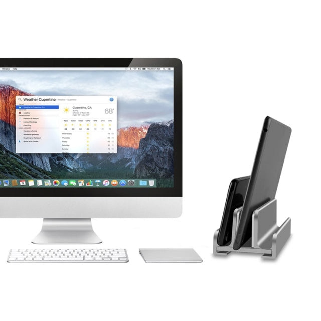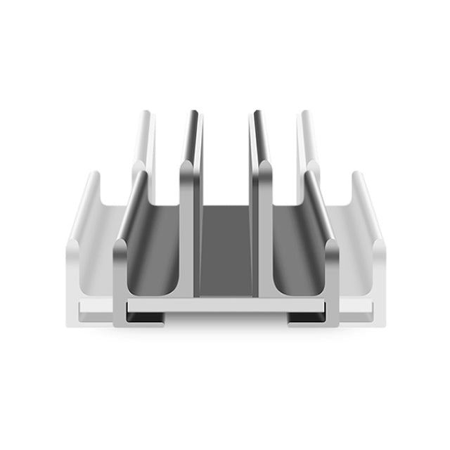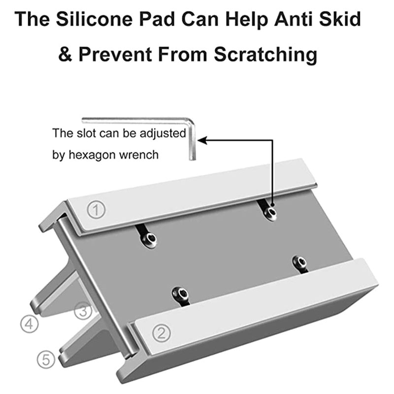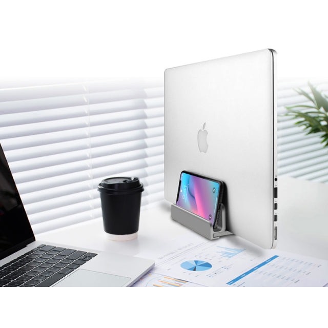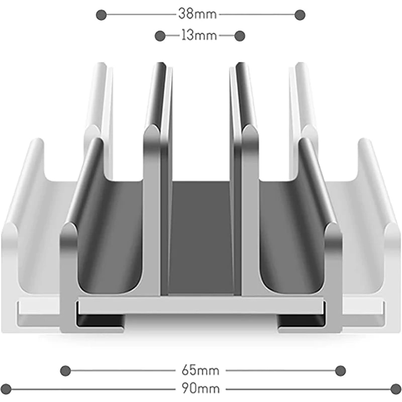 Stand Vertical, Cu 3 compartimente, NAXSIR, Protectie Aluminiu, Covoras Non-Alunecos, Pentru Laptop, Telefon, Tableta, 150x65x47 mm, Argintiu