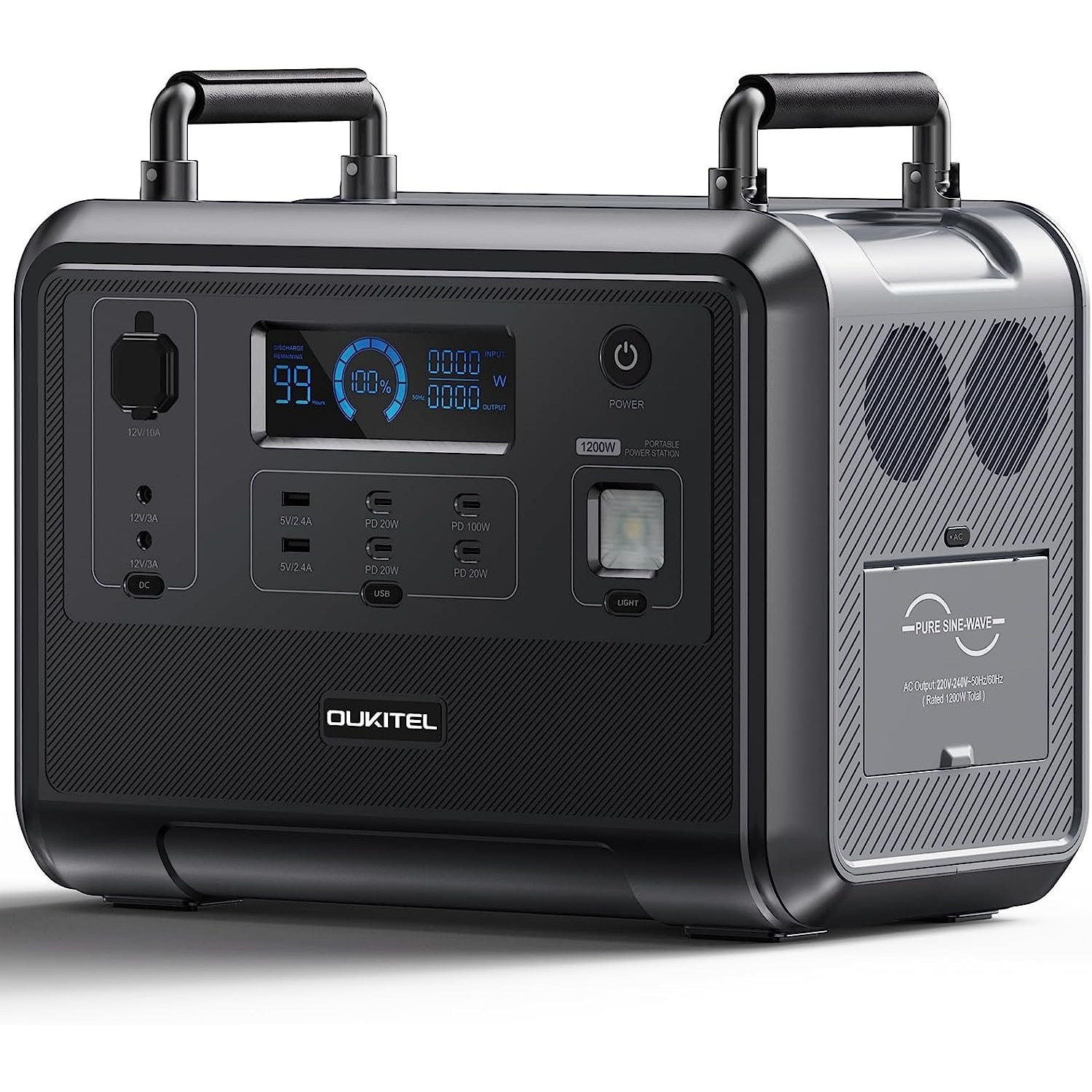 Statie de incarcare electrica portabila / baterie externa Oukitel P1201E, 960 Wh, 1200w, 220V, Ecran LCD, Protectie BMS, Lanterna LED