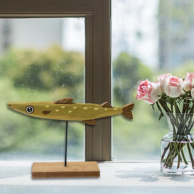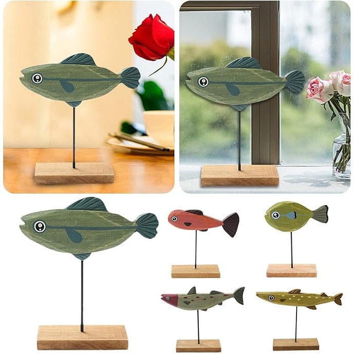 Statueta din lemn pe suport, decorativa pentru birou sau living, multicolor, o dimensiune