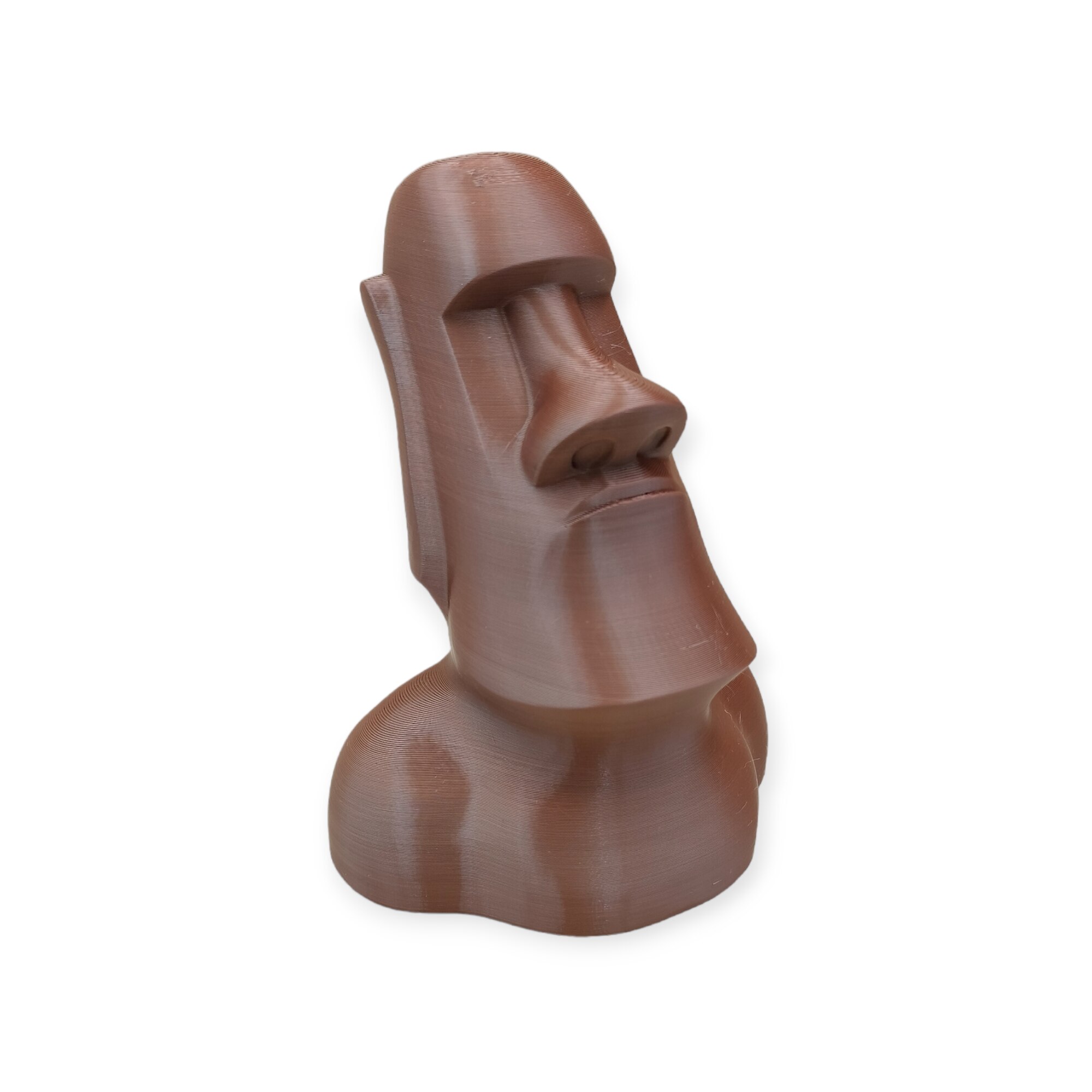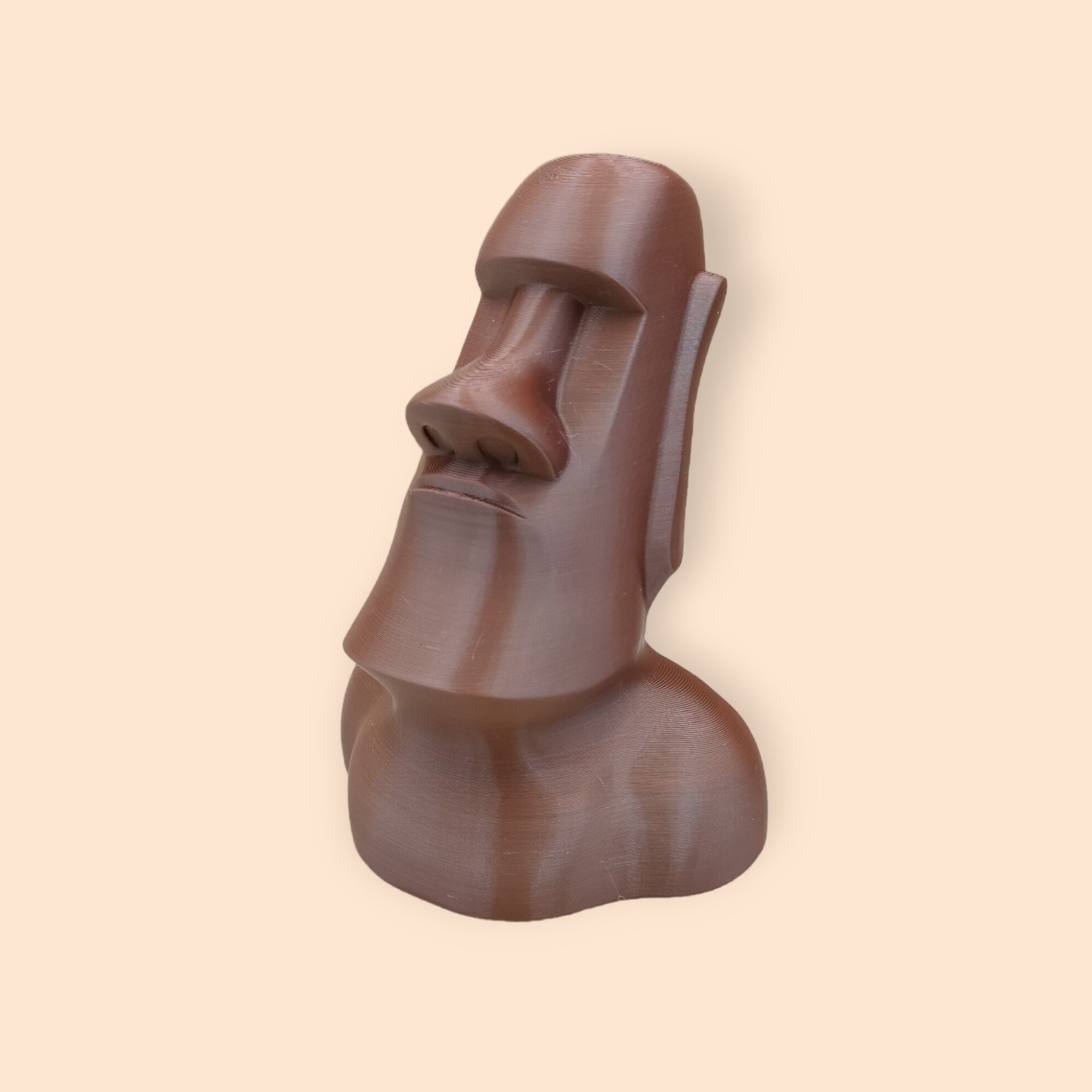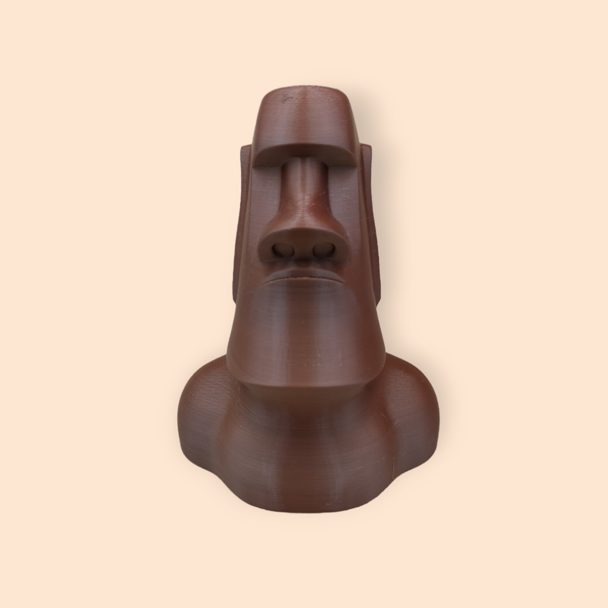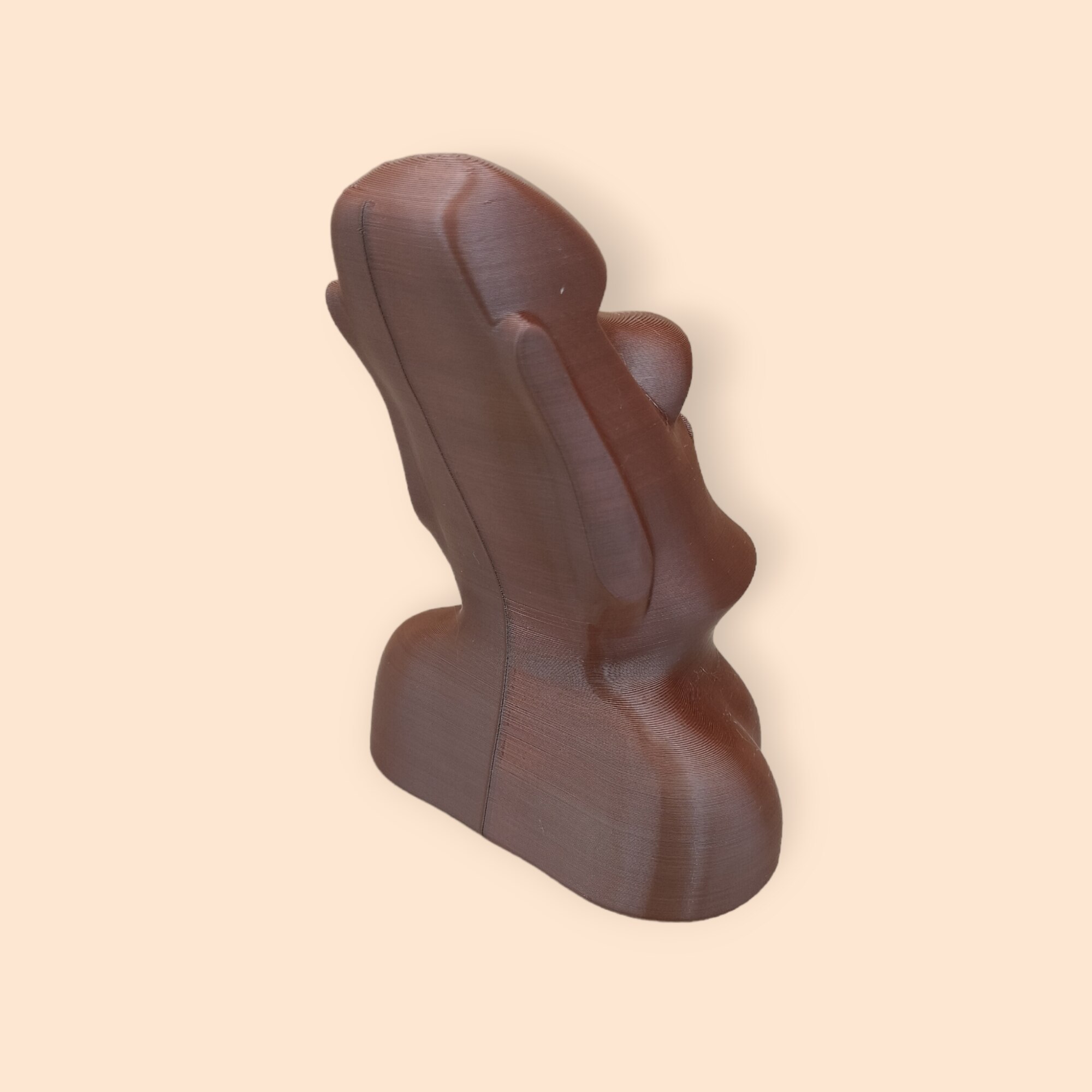 Statueta Moai 3D, Figurina Insula Pastelui, Design Exotic Minimalist, Bioplastic Eco-Friendly, Culoare Maro, pentru Birou, Masa sau Polita, 93x77x120 mm